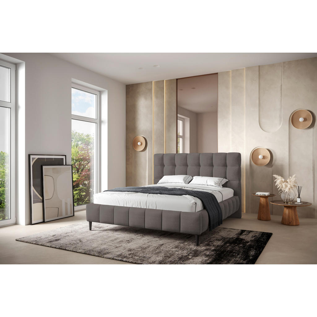OBLAZINJENA POSTELJA 140 cm x 200 cm , les, tekstil, leseni material barve grafita