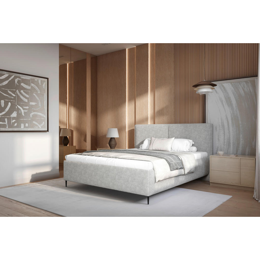 OBLAZINJENA POSTELJA 140 cm x 200 cm , les, tekstil, leseni material siva