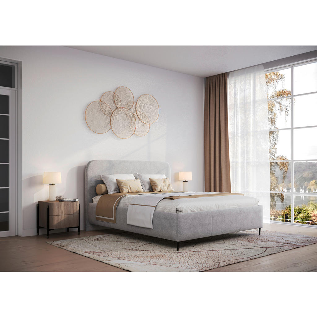 OBLAZINJENA POSTELJA 140 cm x 200 cm , tekstil, leseni material umazano rjava