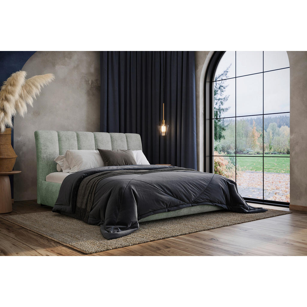 OBLAZINJENA POSTELJA 160 cm x 200 cm , les, tekstil, leseni material svetlo siva
