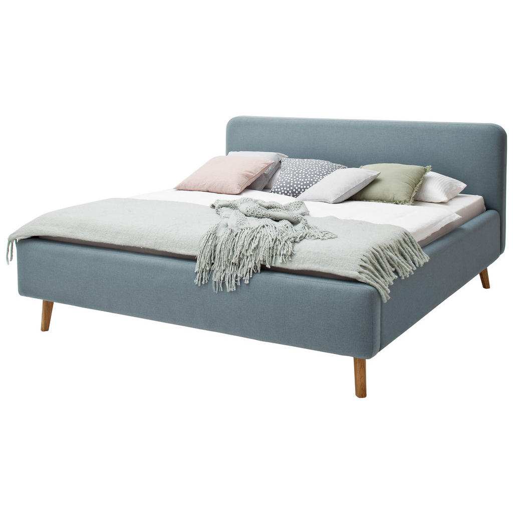OBLAZINJENA POSTELJA 180 cm x 200 cm , tekstil svetlo modra