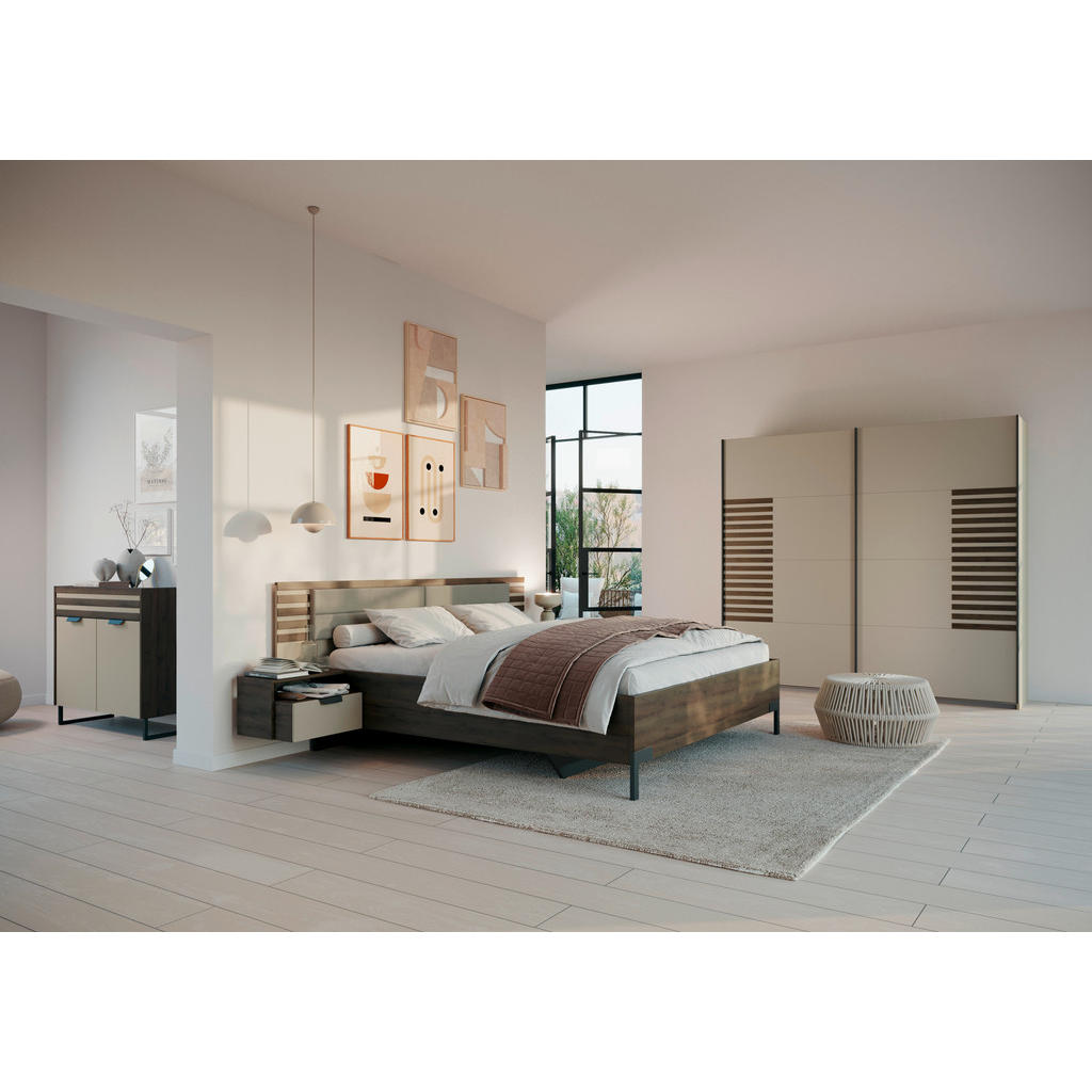 OMARA Z DRSNIMI VRATI, barve šampanjca, temni hrast
