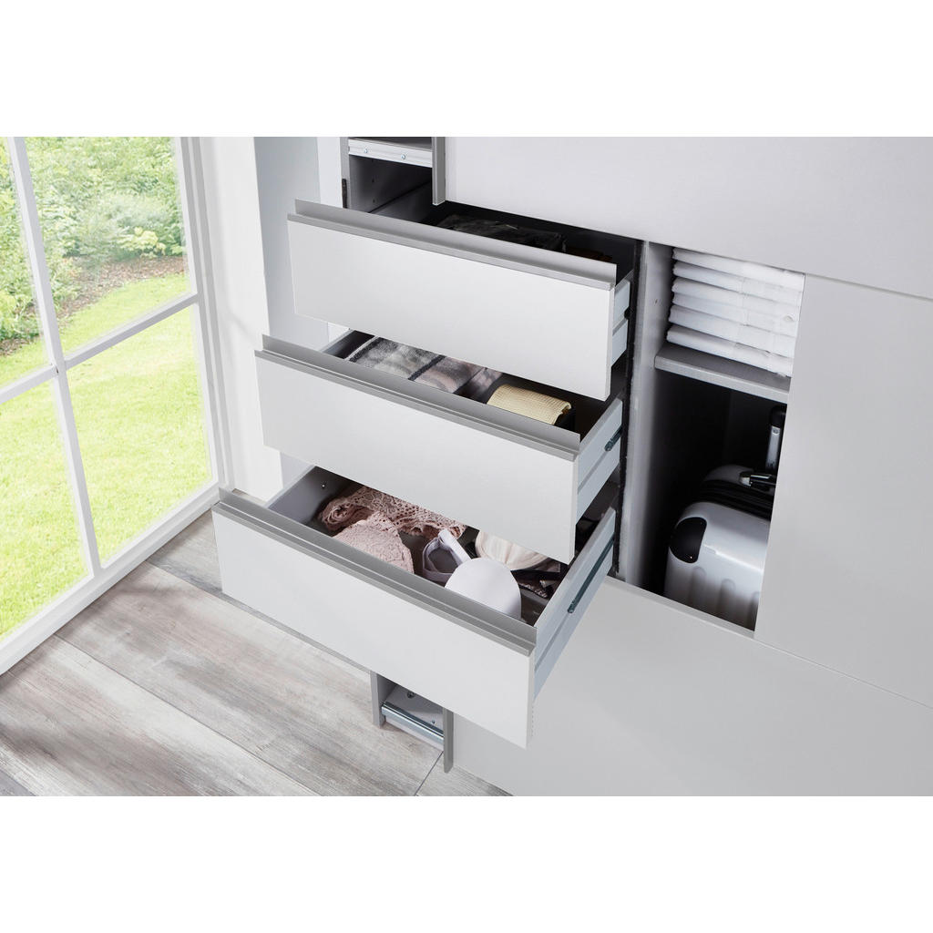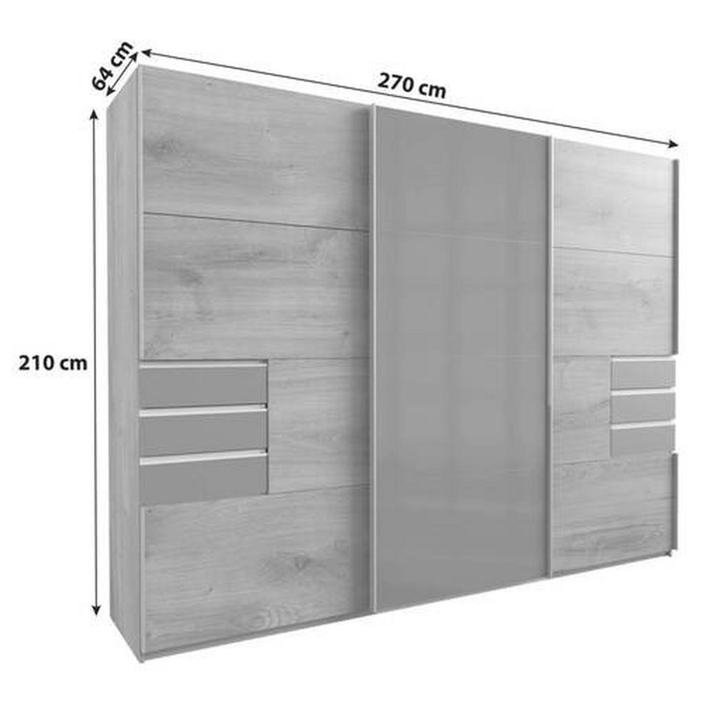 Blagovna znamka Mid.You obsega širok spekter pohištva, dodatkov za pohištvo in tekstila. Naj gre za dnevno sobo, otroško sobo, spalnico ali jedilnico, prav gotovo boste našli izdelke, ki so zelo estetsko dovršeni, a zato nič manj funkcionalni. Slogan “Sredi vašega doma.” se zaradi raznolike in kvalitetne ponudbe znamki resnično poda. Estetsko dovršena, robustna in resnično prostorna omara iz kvalitetne imitacije lesa se ponaša s 6 nastavljivimi policami 6 predali ter 2 drogoma za obešanje oblek. Elegantna ter prostorsko ekonomična drsna vrata olajšajo dostop do predmetov, nevtralna in minimalistična barva pa se brezhibno vključi v večino sodobnih notranjih prostorov. Ključne prednosti: Enostavno vzdrževanje: Za čistočo zadošča občasno brisanje s suho krpo. Nastavljive police naredijo izdelek fleksibilen ter omogočajo individualizirano organizacijo prostora. Drsna vrata prispevajo k estetski dovršenosti ter obenem prihranijo prostor. Lastnosti: Dimenzije: Širina 270 cm, višina 208 cm, globina 64 cm Barva: Bela, barve aluminija Skupno število polic: 6 Maks. obremenitev na polico: Pribl. 8 kg Debelina materiala: Pribl. 15 mm Število vrat: 3 Število drogov za obešanje oblek: 2 Materiali: Imitacija lesa (iverna plošča, folija z dekorjem), steklo, kovina