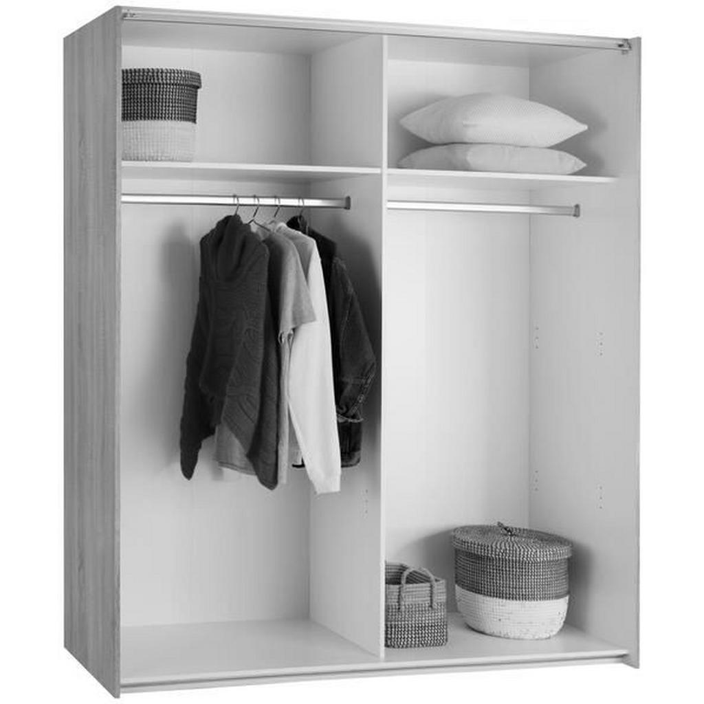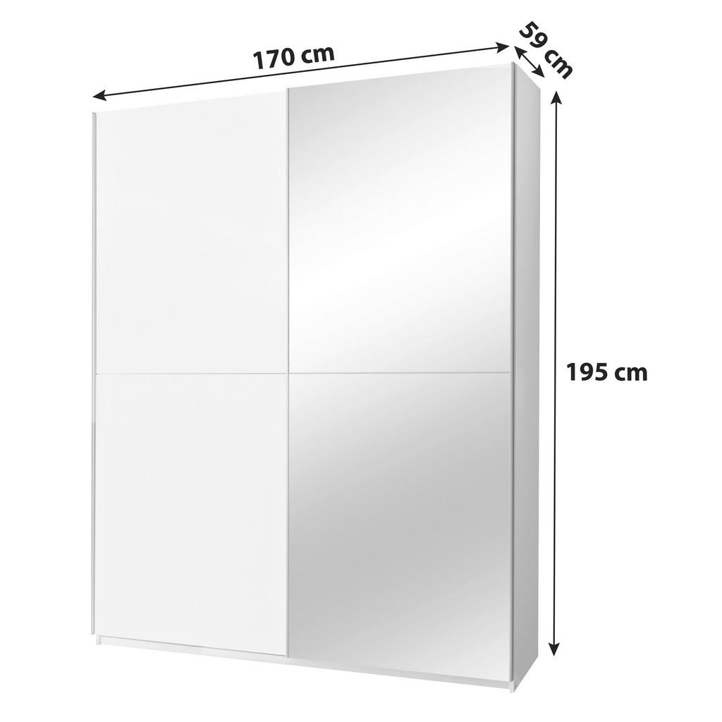Prostorna in elegantna omara z ogledalom za popolno organizacijo! Omara z drsnimi vrati blagovne znamke P&B nudi praktične rešitve za shranjevanje. Njena bela barva se lepo poda v vsak prostor, velika drsna vrata pa omogočajo enostavno odpiranje, ne da bi zavzela dodaten prostor. Poseben dodatek je vgrajeno ogledalo na vratih, ki ne le vizualno poveča prostor, temveč vam omogoča, da pred odhodom še enkrat preverite svoj videz. S P&B omaro boste v svoj dom vnesli več svetlobe – idealna izbira za urejeno in moderno spalnico! Ključne prednosti izdelka: Vgrajeno ogledalo: Praktično in estetsko dopolnilo, ki vizualno poveča prostor. Drsna vrata: Prihranijo prostor in omogočajo enostavno uporabo. Velika notranja prostornost: Omogoča organizirano shranjevanje oblačil in dodatkov. Lastnosti: Dimenzije: širina 170 cm, višina 195 cm, globina 59 cm Material: les, steklo Barva: bela Vkljčeno: police, obešalni drog Število polic: 2 Vrsta polic: NI nastavljiv