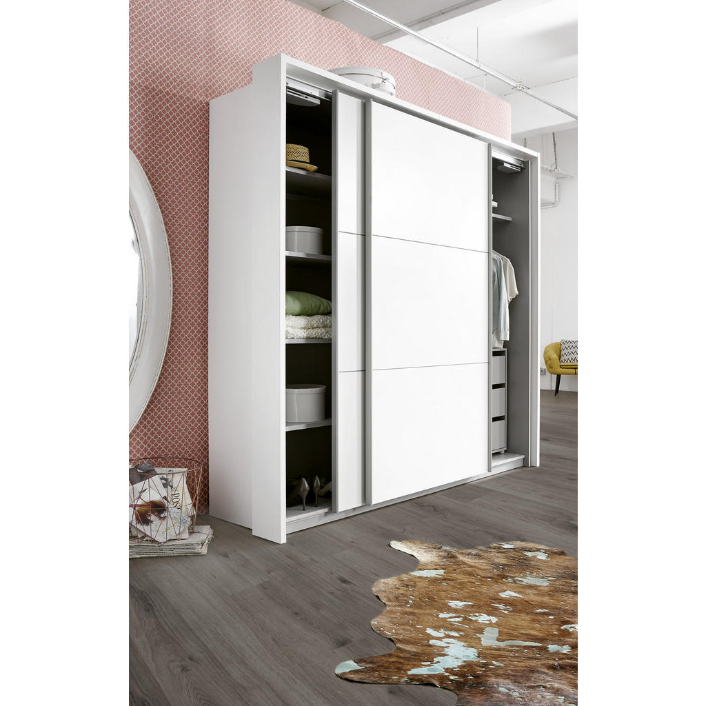 Omara Carryhome z drsnimi vrati predstavlja popolno kombinacijo elegance in funkcionalnosti, ki bo osvežila vsak prostor. Zasnovana v mat beli barvi, ta omara s preprostimi linijami ponuja sodoben in čist izgled, ki se poda v različne stile notranje opreme. Z dimenzijami 270 x 210 x 61 cm ponuja veliko prostora za oblačila in dodatke, hkrati pa zaradi drsnih vrat omogoča enostaven dostop brez pretiranega prostora za odpiranje vrat. Omara vključuje tri palice za obešanje in dve polici, idealne za organizacijo in shranjevanje različnih vrst oblačil. Zasnovana je iz kakovostnega lesnega materiala z dekor folijo, kar zagotavlja trpežnost in enostavno vzdrževanje. Ključne prednosti: Elegantna mat bela barva in aluminijasti ročaji, ki se odlično ujemajo s sodobnimi interierji. Drsna vrata za enostaven dostop brez potrebe po prostoru za odpiranje. Štiri palice za oblačila in dve fiksni polici za dodatno shranjevanje.