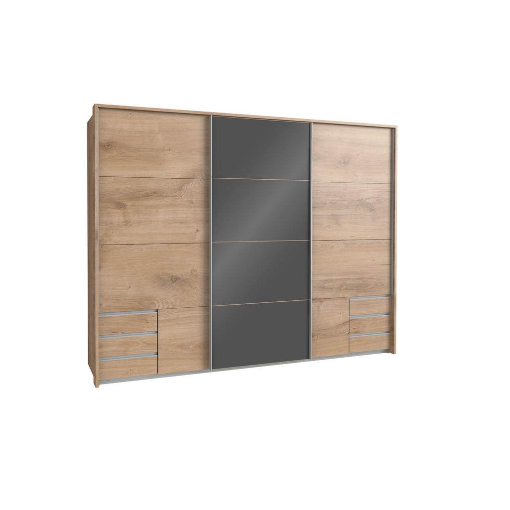 Omara Carryhome ponuja izjemno kombinacijo moderne estetike in prostorne funkcionalnosti, idealno za vaš prostor. Z dih jemajočo širino 270 cm, višino 210 cm in globino 65 cm vam omogoča, da boste uredili svoj prostor brez kompromisov. Kombinacija bele barve in dekorja hrasta prinaša eleganten in hkrati topel izgled, ki se bo izvrstno podal v različne stilistične smernice. S tremi drsnimi vrati, obešalnimi palicami in policami boste imeli vse pod nadzorom – od oblačil do dodatkov. Izdelek je izdelan v Nemčiji in izpolnjuje standarde kakovosti, kar prinaša dodatno zaupanje. S prostornostjo in dovršenim dizajnom se bo ta omara hitro izkazala za osrednji kos vaše spalnice ali garderobe. Ključne prednosti: Široki drsni sistem (270 cm) omogoča maksimalen izkoristek prostora in eleganten videz brez prekinitev. Elegantna barvna kombinacija – bela z dekorjem hickory hrasta – zagotavlja sodoben in hkrati prijeten ambient. Prostorna notranjost s 3 obešaln