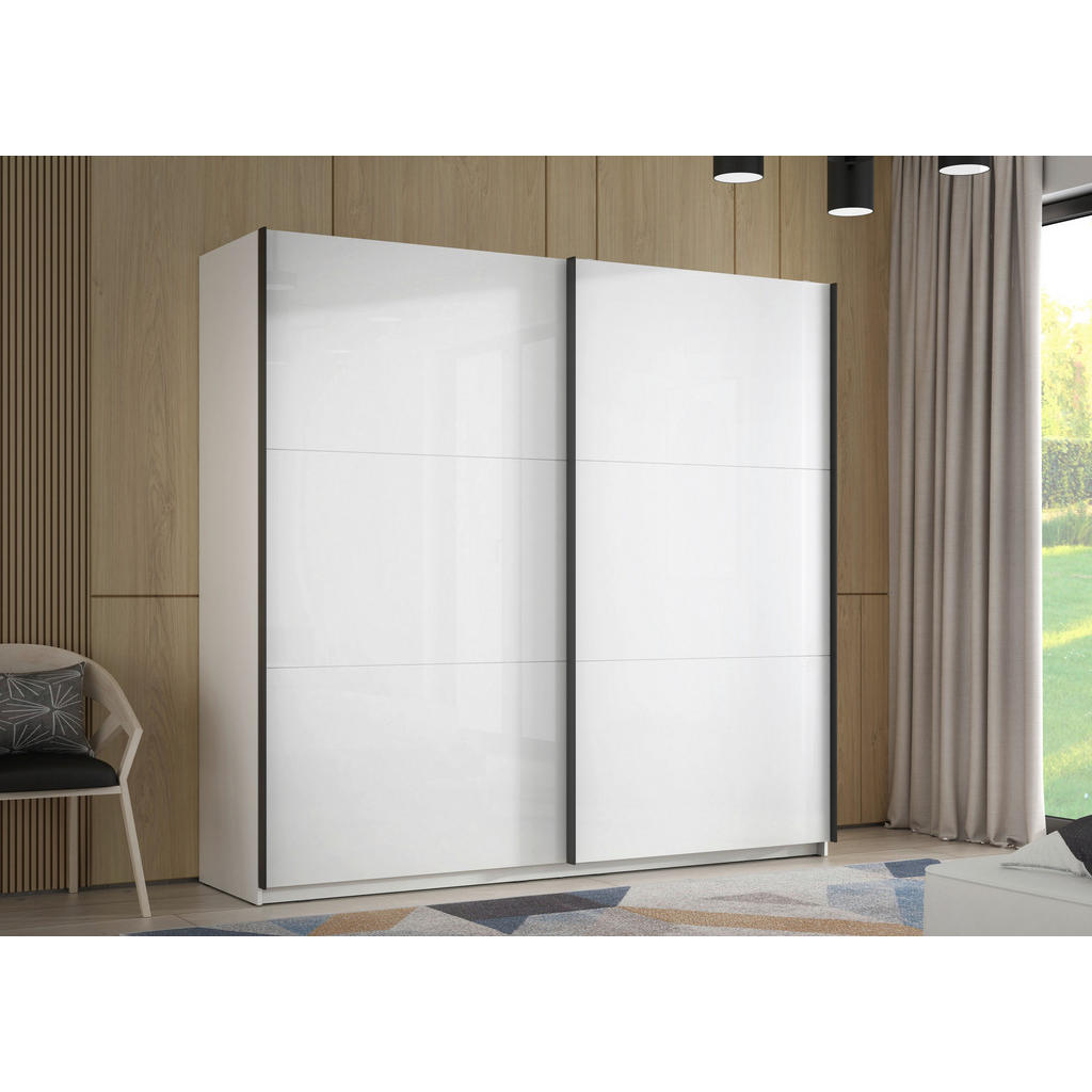 Omara Carryhome predstavlja popolno kombinacijo moderne estetike in funkcionalnosti. Z visoko sijajnim belim zaključkom in črnimi kovinskimi ročaji ta omara prinaša eleganco v vsak prostor. Njena prostorna zasnova z drsnimi vrati omogoča enostaven dostop do vaših oblačil, medtem ko minimalističen dizajn ohranja sodoben videz. Idealna je za spalnice ali mladinske sobe, kjer boste cenili njeno visoko kakovost in enostavno vzdrževanje. Ključne prednosti: Bela fronta za prefinjen in eleganten videz Sodobni črni kovinski ročaji, ki dopolnjujejo minimalističen dizajn Drsna vrata za enostaven dostop in funkcionalno shranjevanje Kompaktne dimenzije: 220 cm širina, 209,7 cm višina, 61,2 cm globina