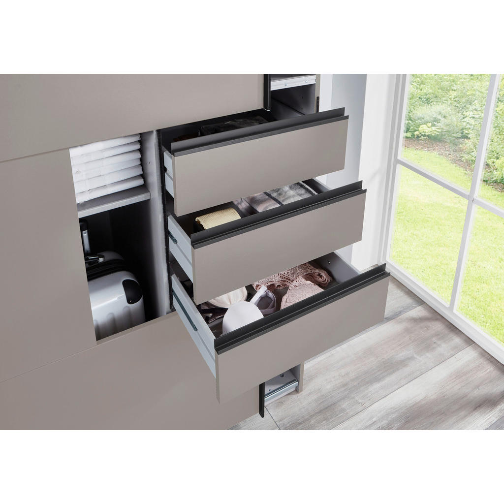 Sodobna omara za oblačila znamke MID.YOU je idealna izbira za tiste, ki cenijo funkcionalnost, sodobni dizajn in visoko kakovostno izdelavo. Z dimenzijami 270/208/64 cm nudi dovolj prostora za urejeno shranjevanje oblačil in dodatkov ter se enostavno prilagodi različnim ambientom. Notranjost omare je zelo praktična in vključuje 2 droga za obešanje oblek, ki omogočata obešanje različnih oblačil, kot so srajce, obleke in plašči, 6 nastavljivih polic za zložena oblačila ali škatle ter 6 predalov za manjše stvari, kot so nogavice ali spodnje perilo. Certifikati in oznake kakovosti, kot so BQ kakovost, izdelano v Nemčiji ter DIN EN ISO 9001, potrjujejo, da omara izpolnjuje najvišje standarde kakovosti in varnosti. Omara MID.YOU je na voljo z različnimi dodatki, velikostmi in lesnimi dekorji, ki omogočajo, da se popolnoma prilagodi vašim potrebam. Ključne prednosti: Prostorna zasnova: Z dimenzijami 270/208/64 cm omogoča veliko shranjevalnega prostora, primernega