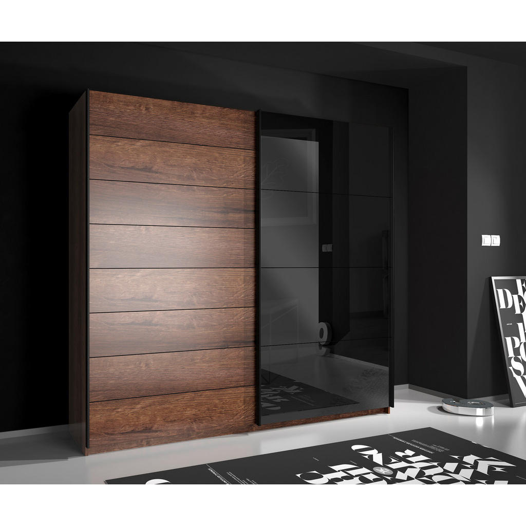Predstavljamo omaro z drsnimi vrati, ki navdušuje z moderno kombinacijo hrastovega dekorja in črnega stekla. Njena prostorna notranjost omogoča optimalno organizacijo oblačil, zahvaljujoč 2 palicama za obešanje in 3 nastavljivim policam. Drsna vrata zagotavljajo eleganten videz in prihranek prostora, omara pa je izdelana iz kakovostnih lesnih materialov in HDF plošč z dekor folijo. Omara je idealna izbira za vse, ki iščejo stilno, praktično in trpežno rešitev za svojo spalnico. Ključne prednosti: Moderna kombinacija hrastovega dekorja in črnega stekla Prostorna notranjost z 2 palicama za obešanje in 3 nastavljivimi policami Drsna vrata za prihranek prostora in eleganten videz Kakovostni materiali: HDF, lesena plata, dekor folija Možnost dopolnitve s priborom in dodatnimi kosi