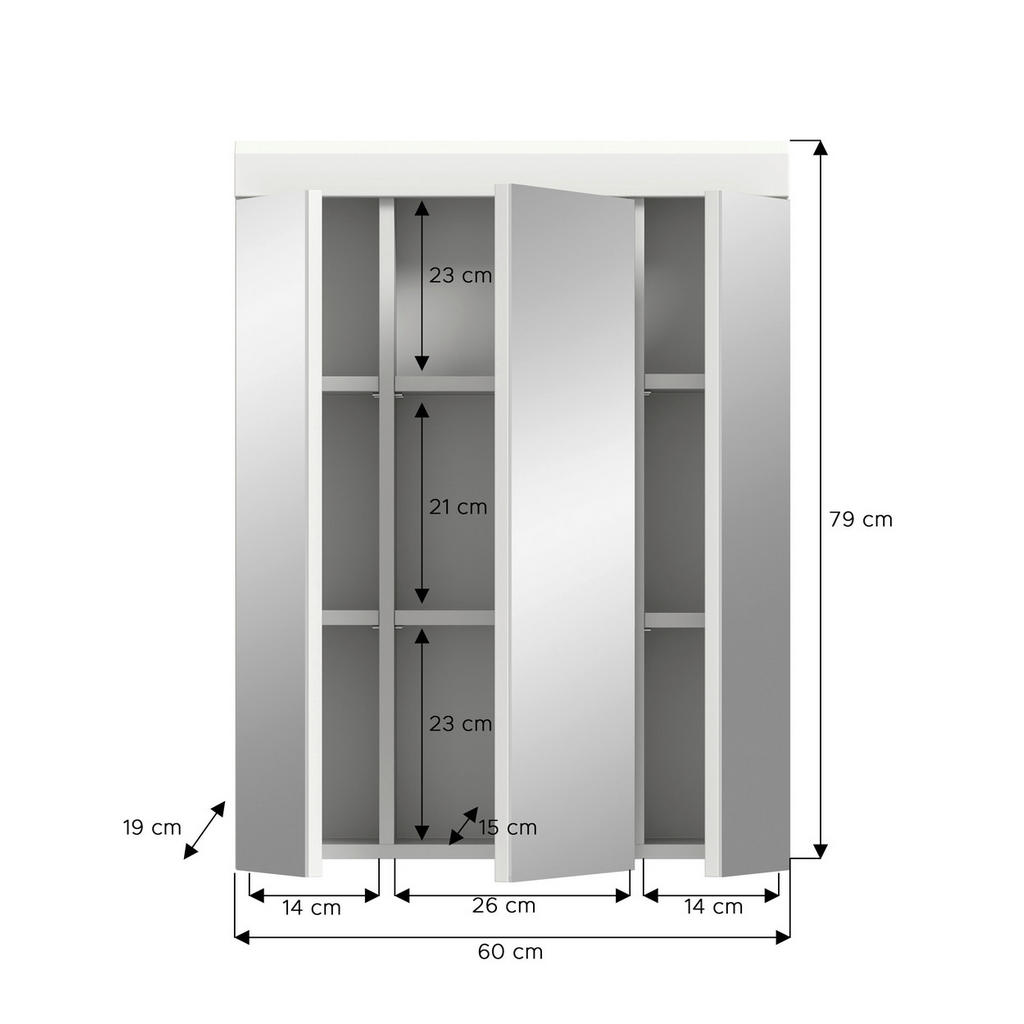 Dodajte svojemu prostoru eleganco in funkcionalnost z omaro SCOUT z ogledalom, ki združuje praktičnost in sodoben dizajn. Njena bela visokosijajna površina in tri ogledala vizualno povečajo prostor in prispevajo k svetlemu, prijetnemu ambientu. Omara se lahko elegantno namesti na steno in tako prihrani dragocen prostor na tleh. Ponuja: 3 x vrata in 6 x nastavljive police, ki omogočajo popolno organizacijo vaših stvari, od kozmetike do dodatkov. Trpežni materiali in natančna izdelava zagotavljajo dolgo življenjsko dobo, medtem ko nastavljive police prilagodijo prostor vašim potrebam. Kompaktne dimenzije Š/V/G: 60/79/19 cm omogočajo idealno umestitev tudi v manjše kopalnice ali hodnike. Ključne prednosti: Eleganten beli visok sijaj za sodoben videz Tri ogledala, ki optično povečajo prostor 3 x vrata in 6 x nastavljive police za maksimalno shranjevanje Design za več prostega prostora
