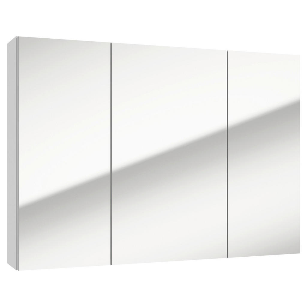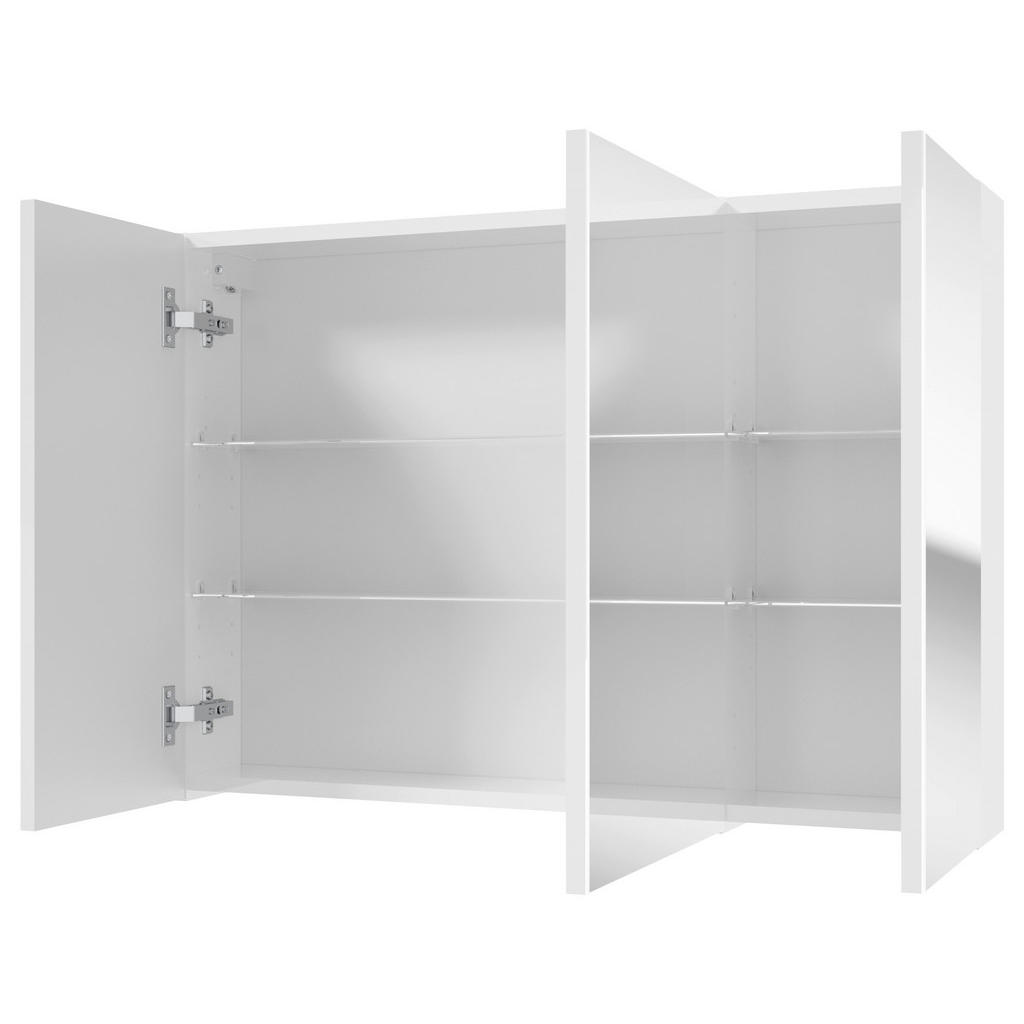 Dieser Spiegelschrank (ca. 85 cm breit) mit 3 Türen bietet praktischen Stauraum für Ihr Beauty-Zubehör: Hautcreme, Rasierschaum oder Zahnpasta sortieren Sie übersichtlich auf die 4 verstellbaren Glasböden und haben so das passende Stylingprodukt im Nu griffbereit. Dank des Soft-Close-Systems schließen die Drehtüren anschließend sanft und sorgen für ein aufgeräumtes Ambiente im Bad. In den Kristallspiegelfronten bewundern Sie Ihre hübsche Erscheinung und starten mit einem Lächeln in den Tag. Auch der lackierte Rahmen des hängenden Schränkchens kann sich sehen lassen – in Weiß fügt er sich in vielfältige Wohnkonzepte ein. Das grifflose Design unterstützt ein modernes Gesamtbild. Dieser Spiegelschrank (ca. 85 cm breit) mit 3 Türen ist die perfekte Basis für Ihr Spa-Interieur!