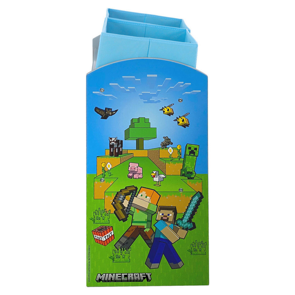 Iščete pametno rešitev za shranjevanje v otroški sobi? Potem je ta čudovit otroški regal s 3 policami točno to, kar potrebujete! Barvit, igriv in izjemno uporaben – poskrbi, da bo vsak kotiček sobice izgledal kot legendarne igrice MINECRAFT! Pospravljanje še nikoli ni bilo tako zabavno! Regal vsebuje 3 prostorne police in dekorativne tekstilne škatle, v katere lahko otroci pospravijo igrače, knjige, ustvarjalni material ali družabne igre. Vse je na dosegu roke – in vedno urejeno! Najboljše? Regal je oblikovan z mislijo na otroško ustvarjalnost in funkcionalnost! Kombinirajte ga z drugimi elementi iz kolekcije in ustvarite sanjsko sobico! Ključne prednosti: Večbarven Minecraft dizajn – takoj pritegne pozornost in v otroško sobo vnese igrivost. Praktične košare za