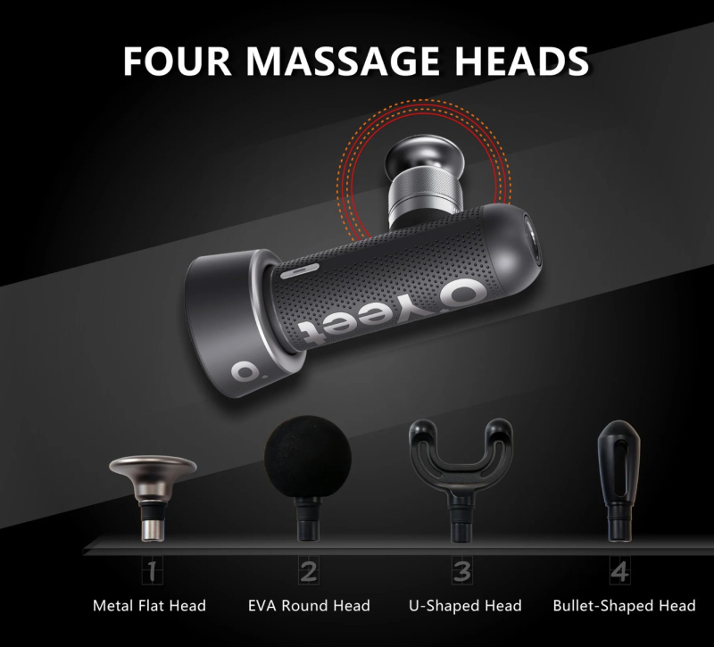 • Štirje zamenljivi masažni nastavki: Prilagojeni za različne dele telesa in vrste masaže.