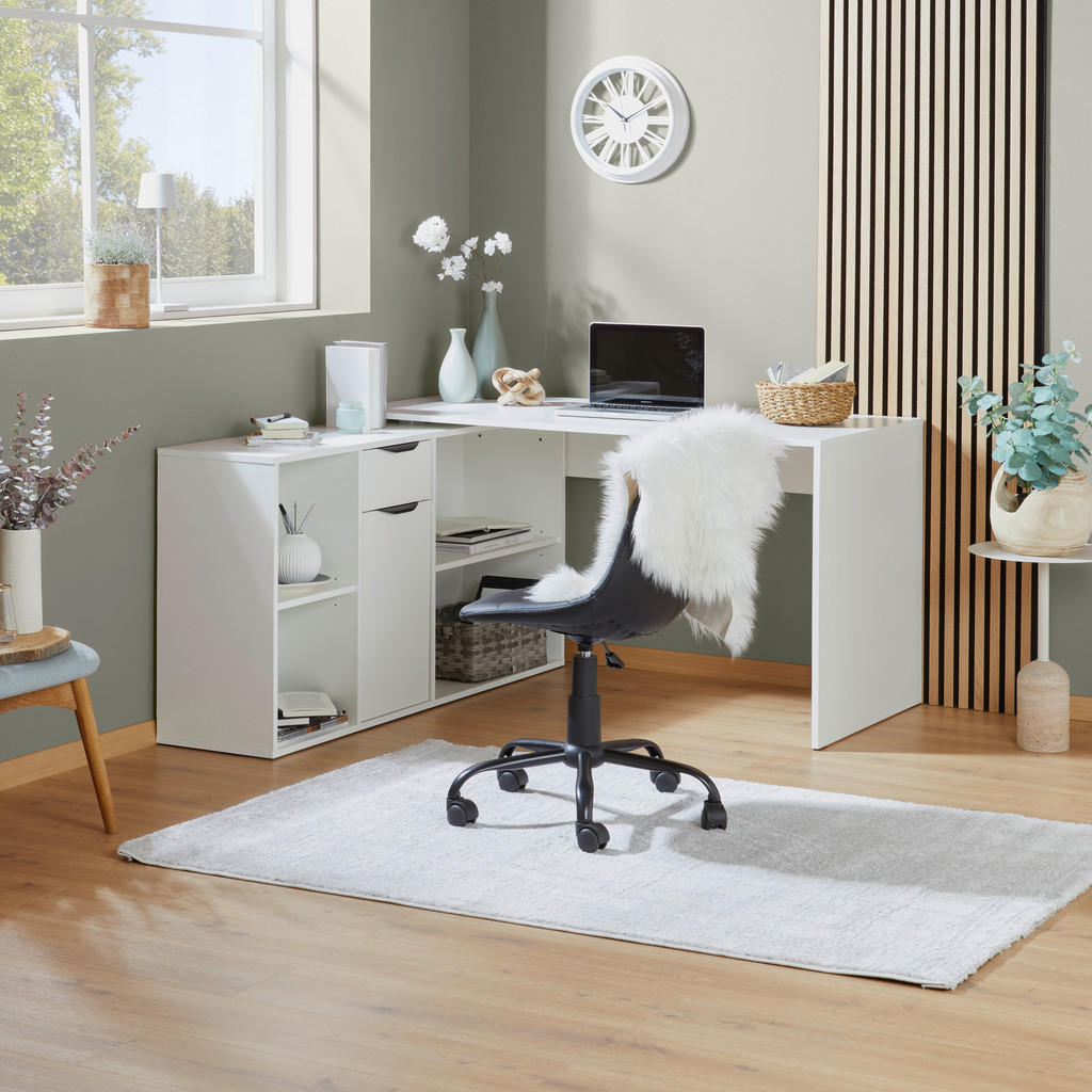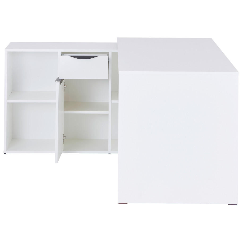 Vsak ustvarjalen trenutek, vsaka pomembna odločitev in vsaka šolska naloga potrebuje svoj prostor – prostor, kjer se lahko zberete, osredotočite in udobno delate. Pisalna miza LIVETASTIC ni le kos pohištva, ampak zanesljiv delovni sopotnik za vaš dom, pisarno ali študijsko sobo. Zaradi premišljene oblike in funkcionalne zasnove vam omogoča, da ostanete organizirani, produktivni in vedno pripravljeni na nove izzive. Kotna zasnova ponuja optimalen izkoristek prostora in dovolj delovne površine za računalnik, dokumente in druge pripomočke. Izdelana je iz kakovostne iverne plošče, površina pa je prevlečena s folijo, kar zagotavlja odpornost proti praskam. Predal in omarica omogočata pregledno shranjevanje vsega potrebnega pisarniškega materiala, dodatni odprti predali pa poskrbijo za hiter dostop do pogosto uporabljenih predmetov ali razstavljanje dragocenih spominkov. Ključne prednosti: Kotna oblika za optimalen izkoristek prostora in več delovne površine. Odporna na praske in enostavna za čiščenje. 4 odprte police za hiter dostop do pogosto uporabljenih predmetov. Stabilna in trpežna konstrukcija za dolgo življenjsko dobo. Možnost kombiniranja z dekorativnimi tekstiln