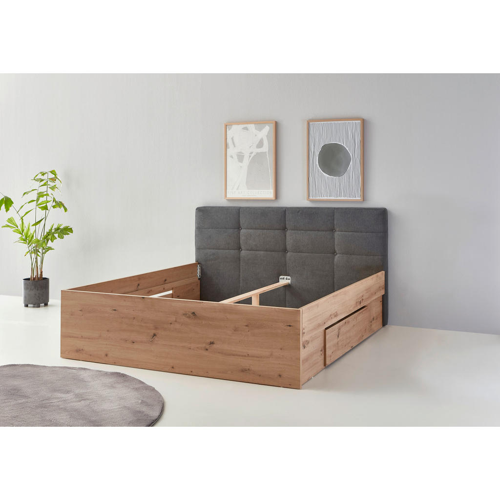 POSTELJA 140 cm x 200 cm , tekstil, leseni material siva, hrast sonoma