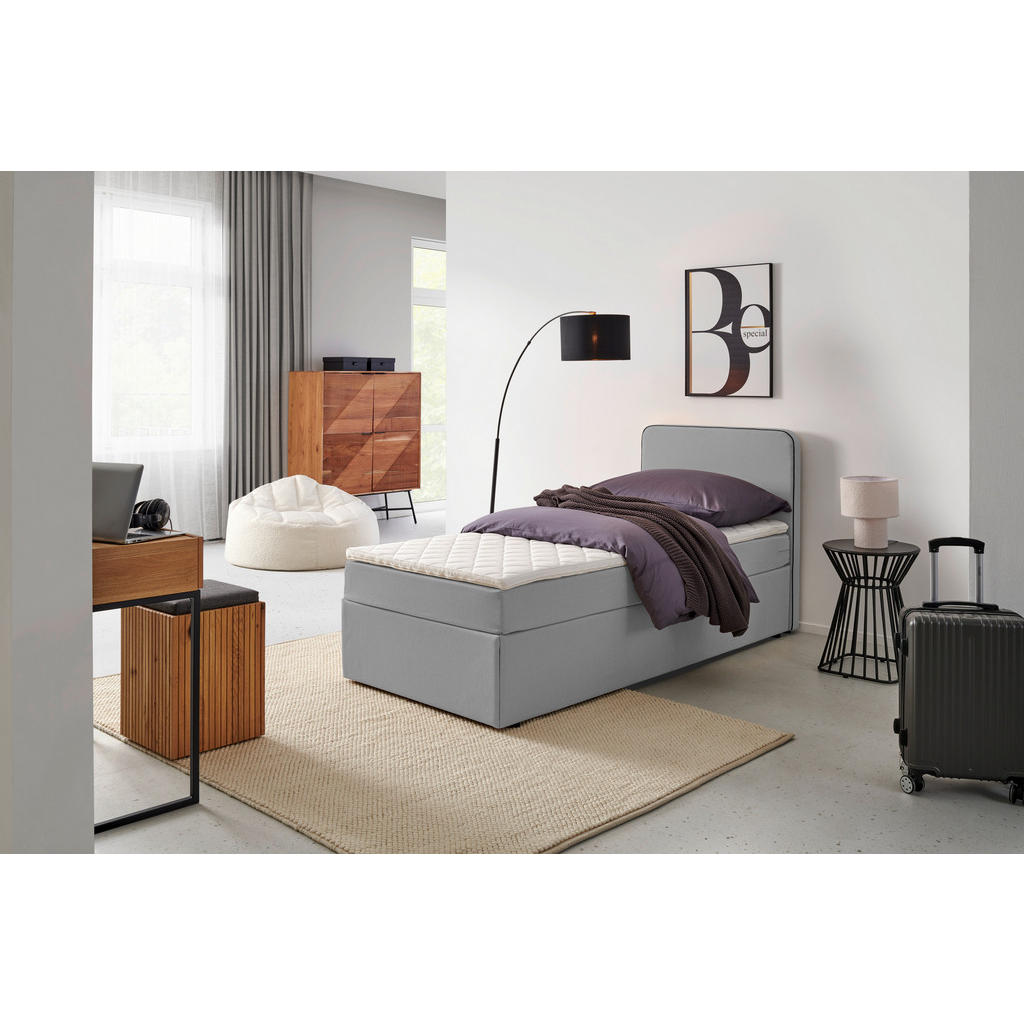 POSTELJA BOXSPRING 140 cm x 200 cm , les, tekstil, leseni material svetlo siva