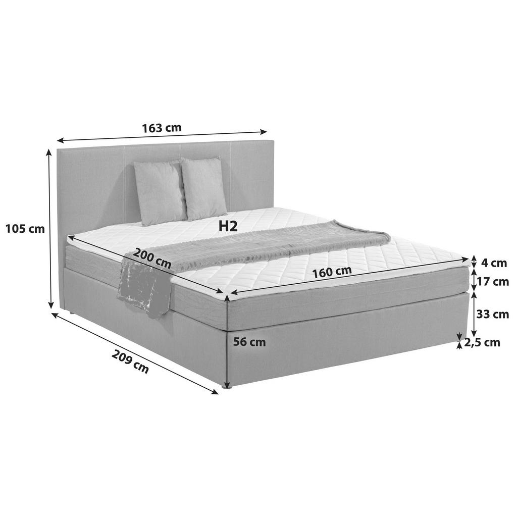 POSTELJA BOXSPRING 90 cm x 200 cm , tekstil svetlo siva, temno siva