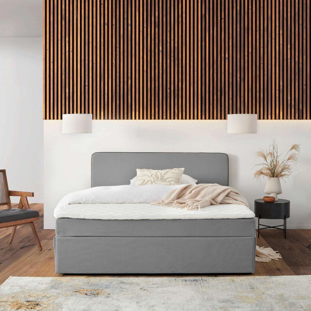 POSTELJA Z VZMETNICO 160 cm x 200 cm , svetlo siva