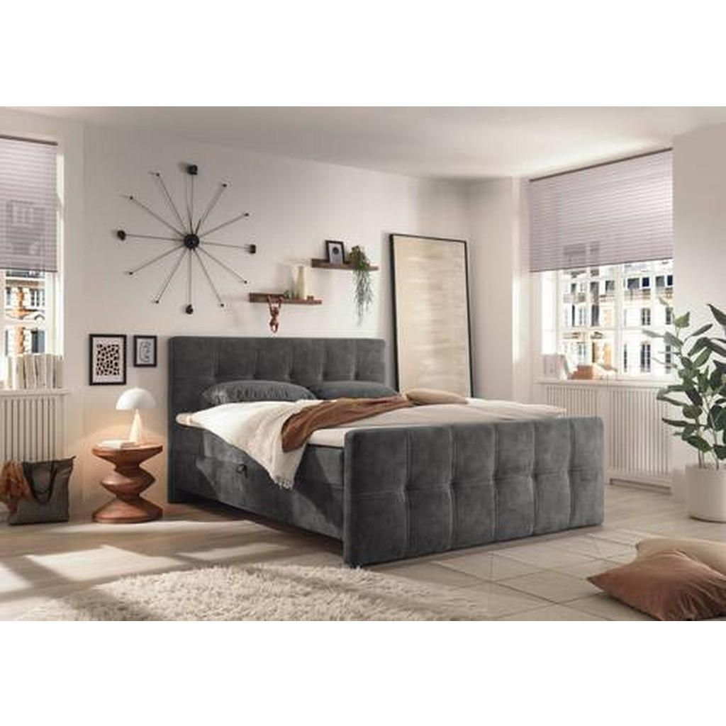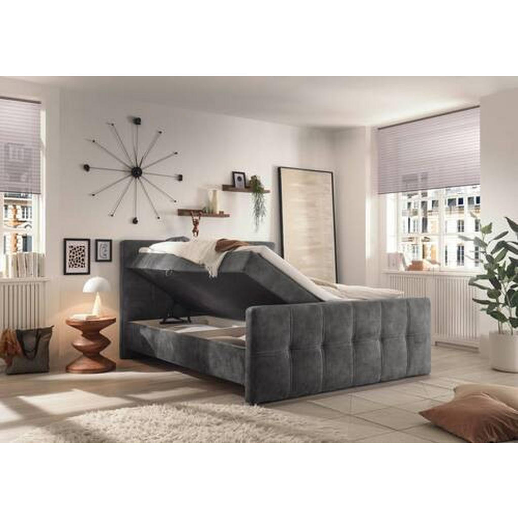 POSTELJA Z VZMETNICO 160 cm x 200 cm , tekstil, leseni material antracit
