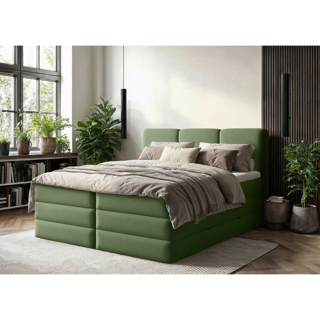 POSTELJA Z VZMETNICO 180 cm x 200 cm , les, tekstil, leseni material antracit