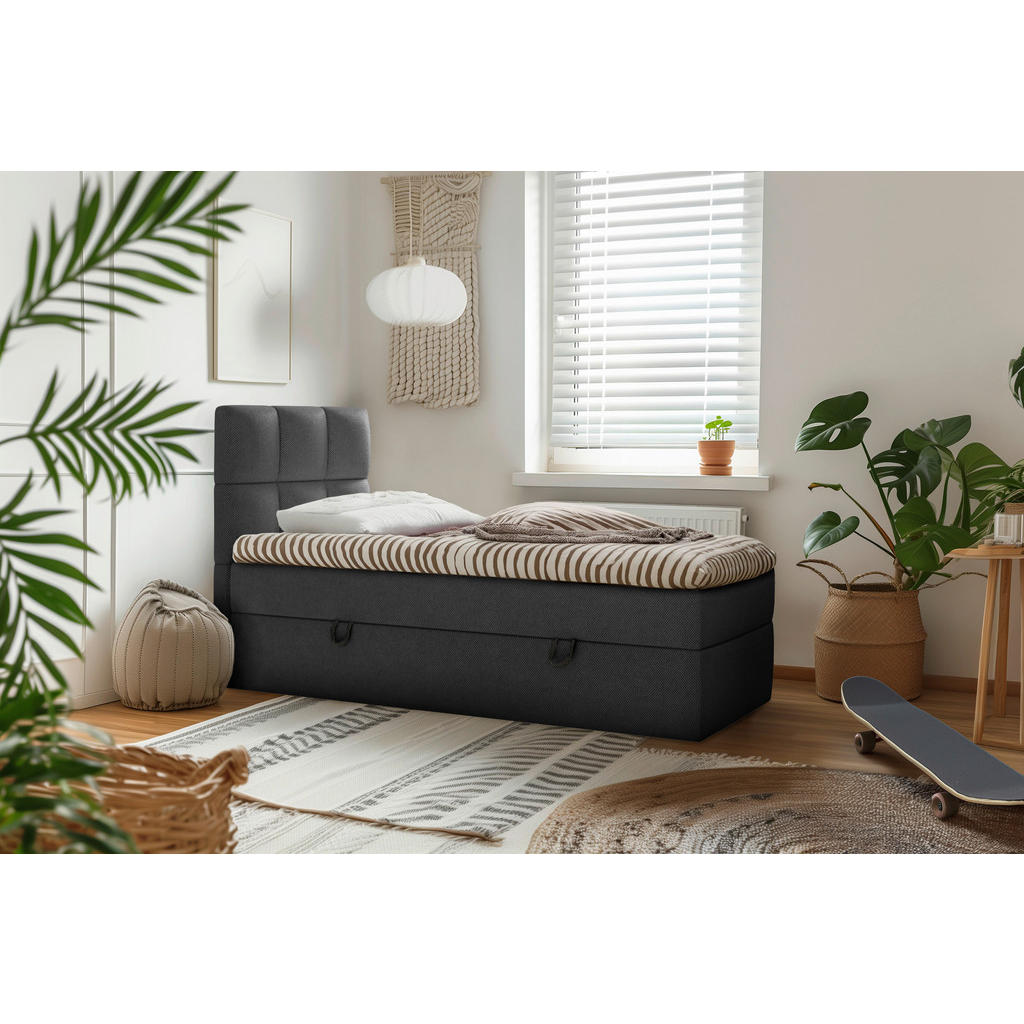 POSTELJA Z VZMETNICO 90 cm x 200 cm , les, tekstil, leseni material črna