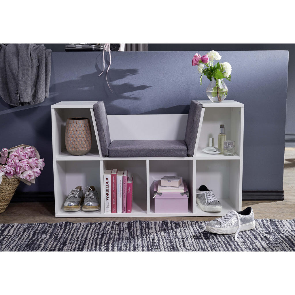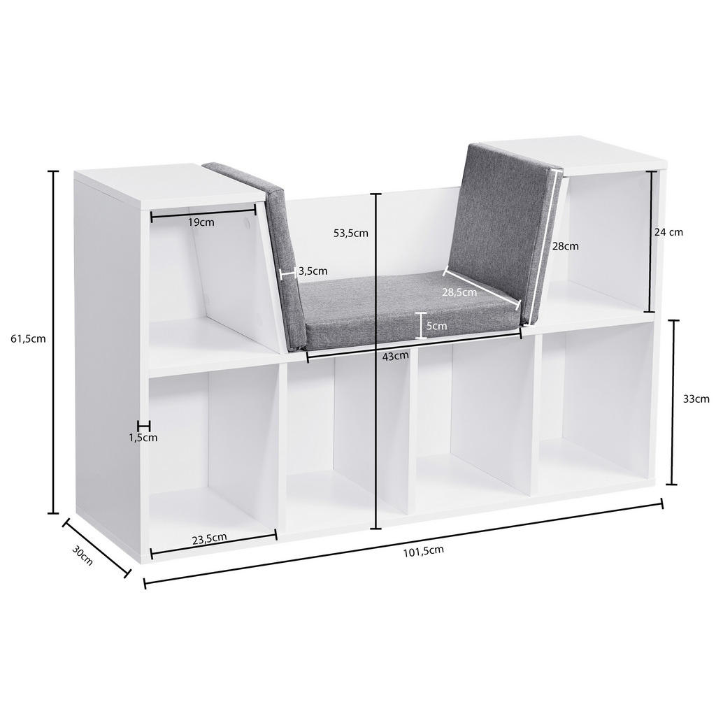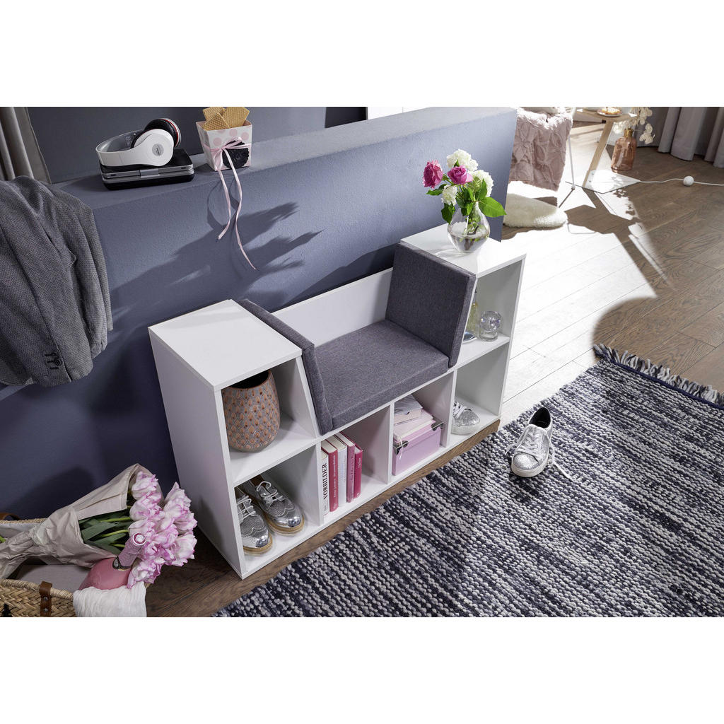Odkrijte MID.YOU regal s 6 odprtimi predali s priročnim sediščem v klasični beli barvi – prostoren, praktičen in vsestransko uporaben talni regal, ki vam ponuja obilico shranjevalnega prostora. Kam ga lahko postavite? Dnevna soba: za knjige, dekoracijo, sveče, rastline ali multimedijske dodatke. Otroška ali mladinska soba: za igrače, zvezke, šolske potrebščine ali košare. Pisarna ali domači kotiček: za dokumente, škatle, revije in pisarniški material. Spalnica ali garderoba: za dodatke, oblačila ali tekstilne košare. Predsoba: za čevlje in modne dodatke. Ključne prednosti: 6 odprtih predalov za pregledno shranjevanje. Sodoben in nevtralen dizajn, ki se prilega v vsak prostor. Stabilna in prostorna konstrukcija. Udobno sedišče, namenjeno preobuvanju čevljev. Lastnosti: Širina/višina/globina: 101,5/61,5/30 cm Barva: bela Material: iverna plošča Površina: prevlečeno z melaminsko smolo, s folijo Ročaj: gumbast dizajn, kovina Število odprtih predalov: 6 Maksimalna obremenitev na polico: približno 5 kg Dodatki vključeni: hrbtišče