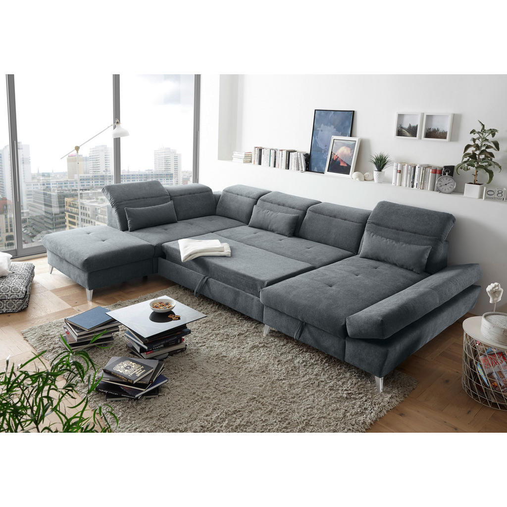 Ustvarite dnevno sobo, o kateri ste vedno sanjali! Popolno opremljena dnevna soba pa naj vsebuje kose pohištva, ki so najbolj nujni in nepogrešljivi. Poleg dnevnega regala, klubske mizice in vitrine, nikar ne pozabite na udobno in prostorno sedežno garnituro. Slednja ponavadi zaseda tisti osrednji prostor dnevnega prostora, zato naj izžareva slog, ki vam je najljubši. Če želite dnevno sobo opremiti s prostorno in posebno sedežno garnituro, potem izberite sedežno garnituro, ki je del blagovne znamke Hom’In. Ponaša se z zelo prostornim sediščem in kakovostno, mehko tkanino, prijetno na otip. Izdelana je iz kakovostnih materialov in je oblazinjena. Navdušil vas bo tudi izjemno eleganten in moderen dizajn v antracit sivi barvi. Sedežna garnitura ima tudi praktično posteljno funkcijo. Enostavno in hitro jo lahko spremenite v ležišče dimenzije 120×300 cm. Dimenzije: 245×73-96×350 cm