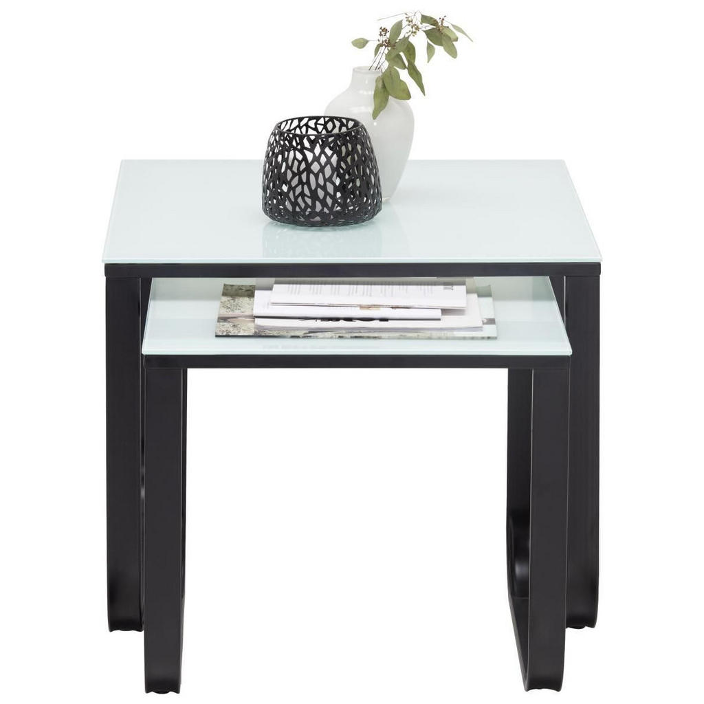 Manjša, klubska mizica je izredno praktična, saj vam v dnevnem prostoru ponuja dodaten odlagalni prostor. Izberite dizajn, obliko in velikost, ki se lepo ujame z ostalim pohištvom, ki je v dnevni sobi. Set miz je del blagovne znamke CarryHome. Mizi sta izdelani iz kombinacije kovine in belega stekla. Podnožje je v črni barvi in črno-bela barvna kombinacija naredi mizi res atraktivni in moderni. Uporabljate ju lahko skupaj ali posamično. Sta v različnih velikostih in ena drugo lepo dopolnjujeta. Dimenzije večje mize: 55x45x55 cm Dimenzije manjše mize: 45x40x45 cm