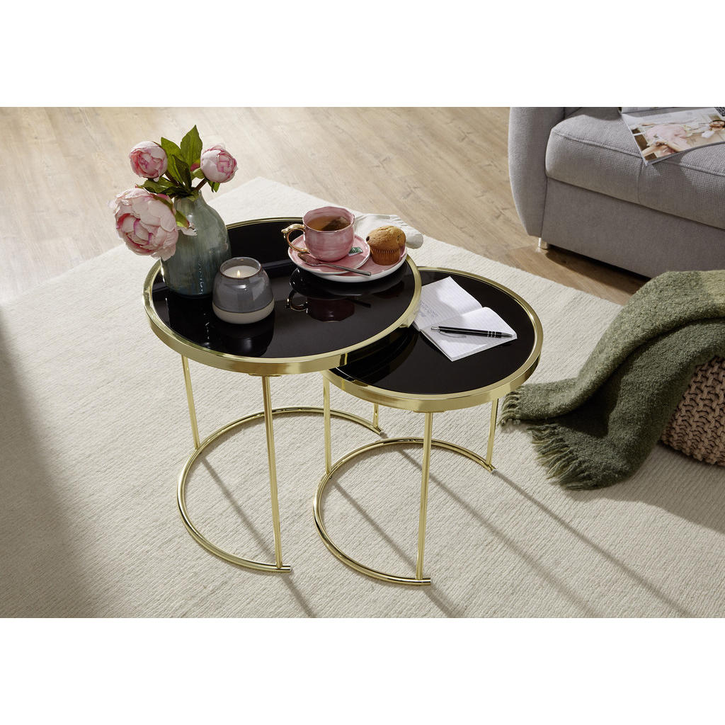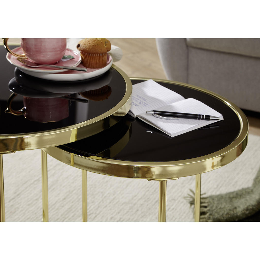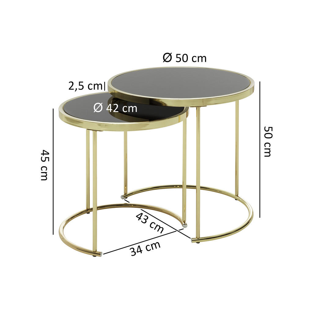 Set dveh mizic MID.YOU v zlati barvi sta več kot le pohištveni kos – sta prava oblikovalski izjavi, ki v prostor vneseta eleganco in pridih prestiža. Z zlatim sijajem delujeta kot razkošen dekorativni poudarek, ki brez težav dopolni moderne, glamur ali art déco interierje. Popolni sta kot klubski mizici v dnevni sobi, kjer bosta blesteli ob sedežni garnituri, ali kot stilski dodatek v salonu, preddverju ali hotelski sobi. Na njima lahko postrežete kavo, čaj ali sladke dobrote, služita lahko kot razstavni prostor za dišeče sveče, umetniške kose ali sveže cvetje. Mizici bosta odlična izbira za vse, ki iščejo nekaj drugačnega in prefinjenega. Ključne lastnosti: Razkošna zlata barva. Dizajnerski poudarek prostora. Večnamenska uporaba (dnevna soba, salon, predsoba). Popolni za dekorativne dodatke. Stabilna in kakovostna izdelava. Odlična kombinacija z modernimi in glamur stili. Lastnosti: Set: 2-delni Dolžina/širina/višina: 58/58/43 cm Miza 1 (višina/premer): 50/50 cm Miza 2 (višina/premer): 45/42 cm Barva: