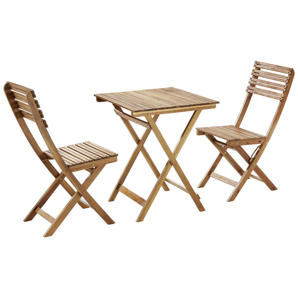 3-delni set za balkon AMBIA GARDEN – naravna eleganca v vašem kotičku na prostem. Ustvarite popolno poletno oazo na balkonu ali terasi s 3-delnim balkonskim setom, ki ga krasi naravni šarm, praktičnost in udobje. Ta set, izdelan iz masivnega akacijevega lesa, prinaša toplino naravnih materialov in zagotavlja dolgotrajno uporabo. Zaradi zložljive zasnove mize in stolov je izjemno funkcionalen, saj omogoča preprosto shranjevanje in prilagodljivost v manjših prostorih. Rustikalni videz v naravni barvi lesa se bo brezhibno podal tako modernim kot klasičnim zunanjim ambientom. Ne glede na to, ali uživate v jutranji kavi, sproščenem kosilu ali večernem druženju ob svečah – ta komplet bo poskrbel za udobje in prijetno vzdušje. Ključne prednosti: Izdelano iz masivnega akacijevega lesa – naraven in trpežen material Zložljiva miza in stoli – enostavno shranjevanje in prihranek prostora Rustikalni dizajn v natur barvi – estetski dodatek za vsak balkon ali teraso Odporen na vremenske vplive – zaščiten s kakovostnim oljnim premazom Stabilna konstrukcija – miza in stoli prenesejo visoke obremenitve Lastnosti: Material: masiven akacijev les, naoljena površina Barva: naravna, barva akacije Miza: