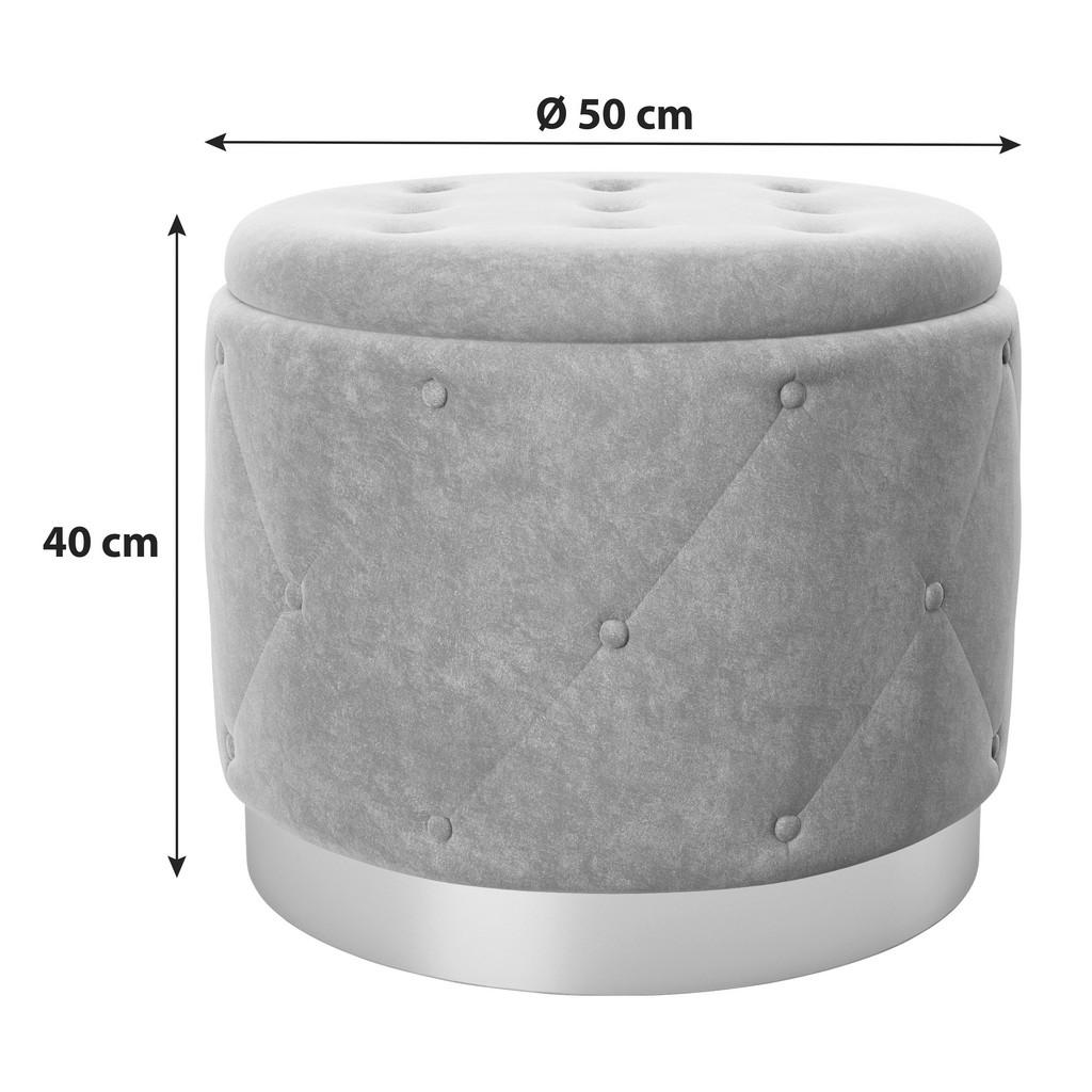 Linija pohištva razvpite znamke Playboy združuje prefinjen luksuz z moderno funkcionalnostjo, pri čemer črpa iz dolge, bogate dediščine znamke, hkrati pa ohranja vsestransko in umirjeno oblikovanje. Kolekcije zaznamujejo čiste linije, bogato oblazinjeni materiali, topli leseni toni ter občasni kovinski ali marmorni poudarki, ki se odlično podajo sodobnim interierjem. Trpežen, funkcionalen tabure iz sintetičnih vlaken se zaradi razmeroma majhne velikosti in nevtralne sive barve poda širokemu spektru sodobnih notranjih prostotov. Zaradi elegantne zasnove bo gotovo pritegnil poglede, vtis pa dopolni robustna konstrukcija, ki mu zagotavlja dolgo življenjsko dobo. Ključne prednosti: Prostor za shranjevanje občutno razširi funkcionalnost izdelka ter mu doda novo dimenzijo. Izdelek prispe montiran, torej vam ga ni potrebno sestavljati. Enostavno vzdrževanje: Za čistočo zadošča občasno brisanje s suho krpo. Lastnosti: Dimenzije: Širina 50 cm, višina 40 cm, globina 50 cm Barva: Siva, zlate barve Maks. obremenitev: Pribl. 80 kg Materiali: Tekstil (sintetična vlakna) Površina: Žamet