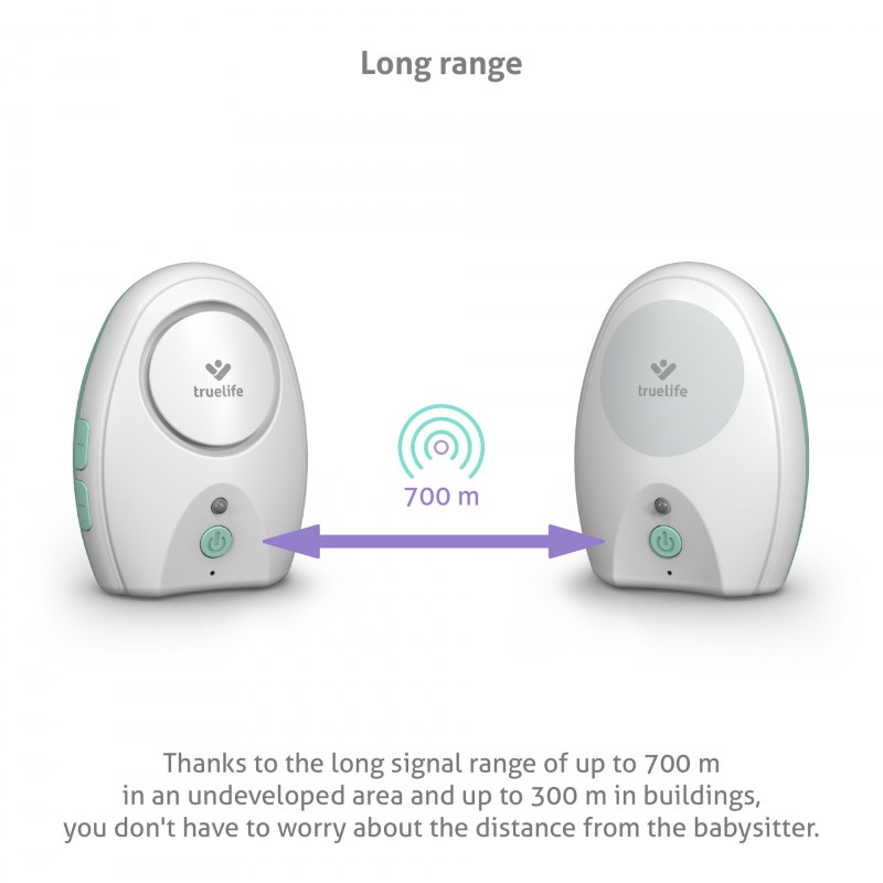 Želite paziti na svojega dojenčka in se odzivati na njegove potrebe, tudi če spi v drugi sobi? Digitalna avdio varuška TrueLife NannyTone VM Pocket z zanesljivim prenosom in praktičnimi funkcijami bo poskrbela za vas. Obe enoti sta polnilni, zato bosta vaš pomočnik ne samo doma, ampak tudi na poti. Z uporabo USB-C lahko varuško enostavno napolnite bodisi iz vtičnice bodisi prek powerbank. Zahvaljujoč zanesljivemu prenosu signala z dosegom do 700 metrov boste vedno imeli svojega otroka na očeh in ne boste zamudili niti enega kolcanja.