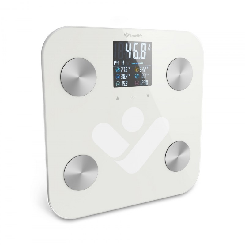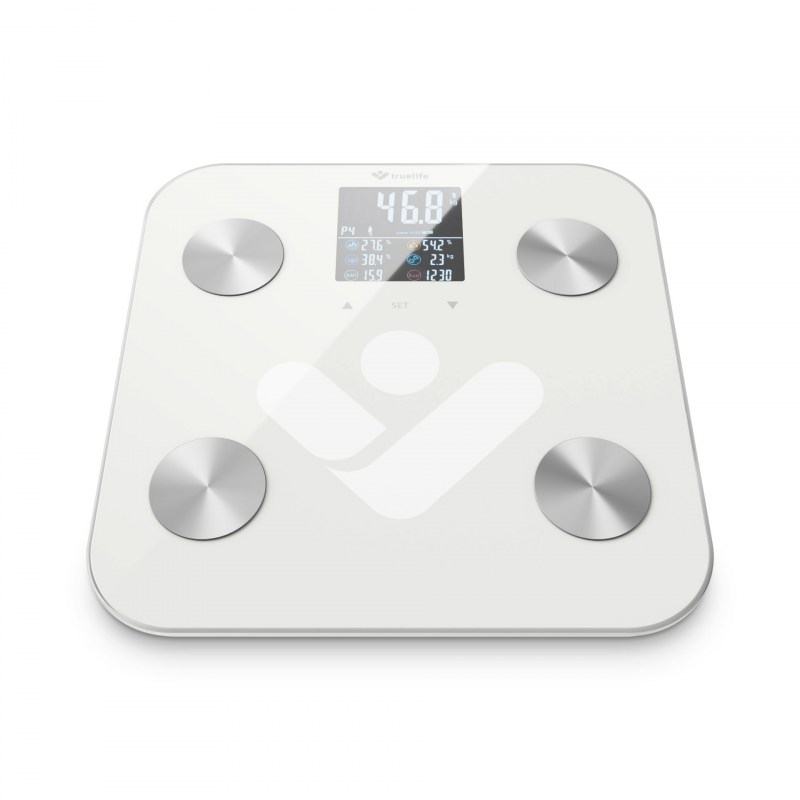 Predstavljajte si osebno tehtnico, ki je tako pametna, da boste z njo svoje telo spoznali do potankosti. TrueLife FitScale W6 BT to zmore. Zelo natančno prikaže vašo trenutno maso in s pomočjo bioelektrične impedančne analize doda številne druge uporabne informacije. Vse boste pregledno videli na barvnem zaslonu LCD s sedmimi telesnimi indeksi. Tehtnica je tako inteligentna, da bo samodejno prepoznala uporabnika. Prvovrstno prekrivno steklo zdrži maso do 180 kg. Tehtnica bo zadoščala za hitro diagnostiko telesa, a če vas bo zanimal opis vseh merjenih indeksov, je odlična tudi mobilna aplikacija. Samo prek tehnologije Bluetooth povežete tehtnico s telefonom in v aplikaciji boste takoj videli popolno telesno poročilo in statistiko.