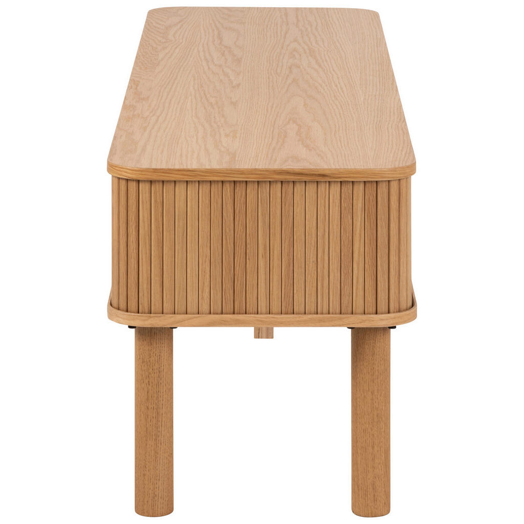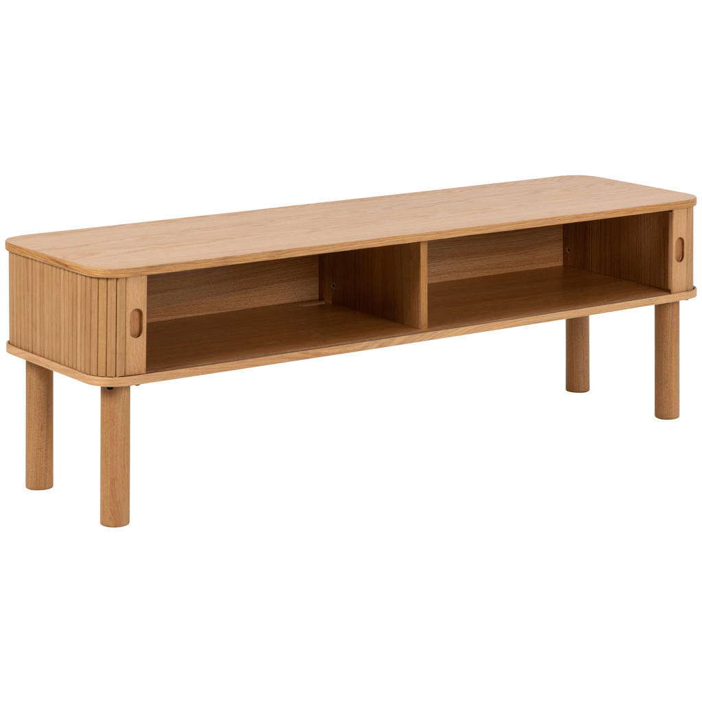 TV-element MID.YOU v toplem odtenku lakirane hrastovine združuje minimalistično eleganco in praktičnost za vaš dnevni prostor. Njegova kompaktna širina 140 cm omogoča optimalno namestitev televizorja, medtem ko skrbno oblikovana drsna vrata skrivajo prostor za medijske naprave in dodatke. Elegantna kombinacija MDF plošč z lakiranim hrastovim dekorjem daje omarici sodoben in hkrati topel videz. Ključne prednosti: Lakiran hrastov dekor za sodoben in naraven videz 2 x drsna vrata za praktično in diskretno shranjevanje Kompaktne dimenzije – primerna za manjše in srednje dnevne sobe Stabilna konstrukcija z MDF ploščami in trpežnim lakom Preprosto vzdrževanje – dovolj je suho brisanje Lastnosti izdelka: