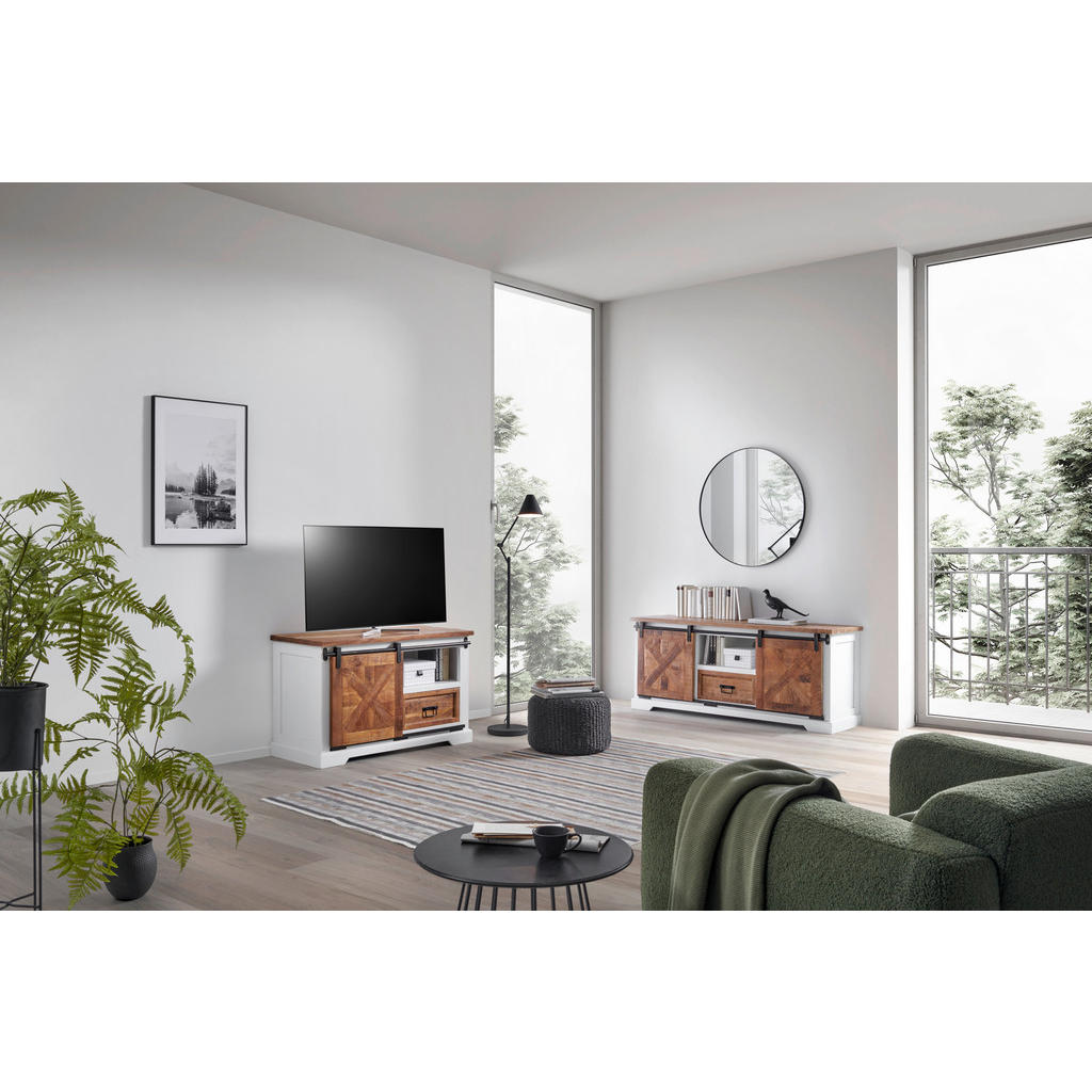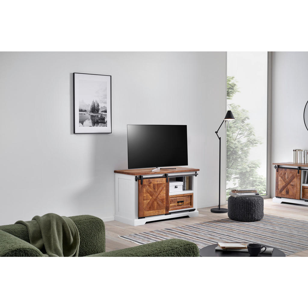 TV-element MID.YOU prinaša v vaš dnevni prostor toplino podeželskega sloga, prepleteno s sodobno funkcionalnostjo. Z masivnejšo zasnovo in premišljenimi detajli ustvarja občutek domačnosti ter hkrati ponuja praktično rešitev za postavitev televizije in shranjevanje. Idealen je za vse, ki cenijo kakovostno pohištvo z izrazitim značajem in brezčasnim videzom. Ključne prednosti: Izrazit country dizajn, ki prostoru doda toplino in eleganco Velik in stabilen TV-element za večje televizorje Premišljena zasnova za urejen in estetski videz dnevne sobe Kakovostna izdelava za dolgotrajno uporabo Primeren za klasično in sodobno opremljene interierje Lastnosti: Tip izdelka: TV-element Dimenzije: 105 × 63 × 45 cm (Š/V/G)
