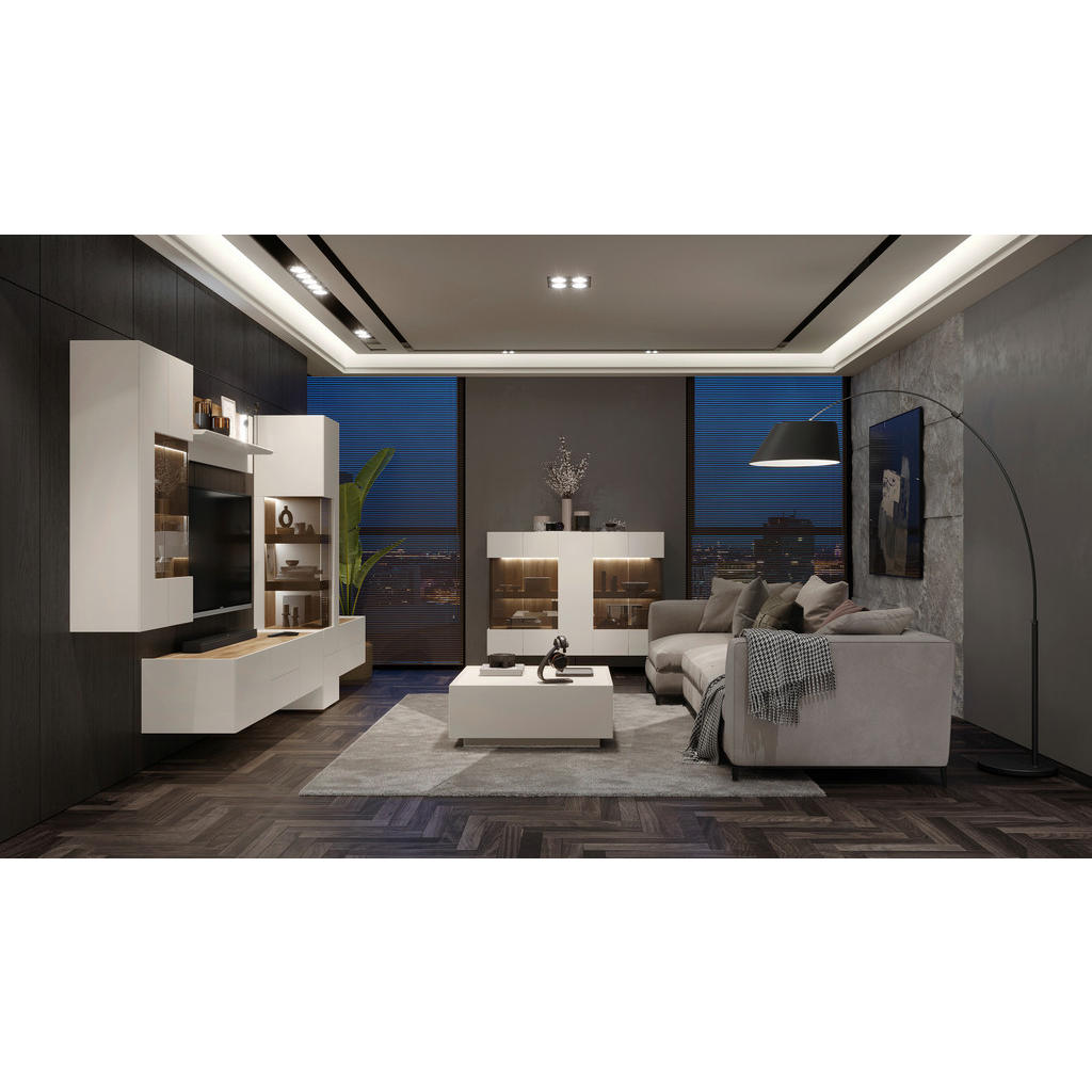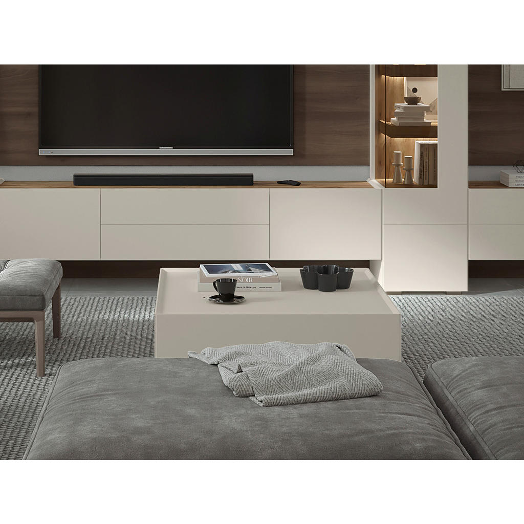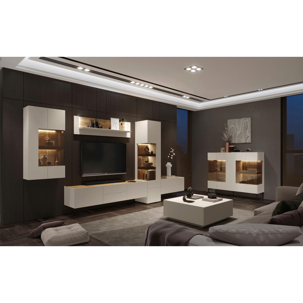 Predstavljamo vam eleganten TV-element, ki z minimalistično obliko in prestižno barvo kašmirja v prostor vnese sodoben mir in prefinjenost. Kombinacija mat lakirane MDF fronte in čistih linij ustvarja brezčasen kos, ki se odlično poda tako modernim kot tudi bolj umirjenim interierjem. Zasnovan je za funkcionalno uporabo, hkrati pa deluje kot estetski poudarek dnevne sobe. Ključne prednosti: Sodoben dizajn v barvi kašmir – mat lakirana površina deluje elegantno in luksuzno. Kakovostna izdelava – MDF fronta in stabilna konstrukcija iz lesnega materiala in kovine. Velik in prostoren TV-element – idealen za večje televizorje in urejen multimedijski kotiček. Čiste linije brez vizualnega šuma – popolna izbira za minimalistične in moderne ambiente. Lastnosti: Dimenzije: 206 × 37 × 47 cm (Š × V ×