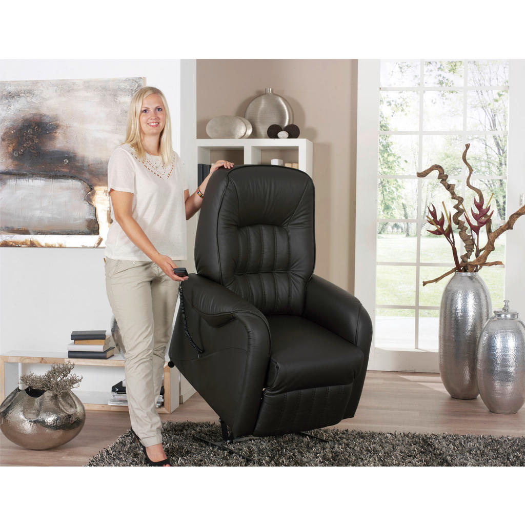TV-fotelj HIMOLLA: Vaša oaza udobja in inovativne tehnologije! Če iščete več kot zgolj običajen fotelj, je TV-fotelj HIMOLLA prava izbira za vas! Preberite, zakaj … Z zasnovo, ki je posebej prilagojena za udobno in sproščujoče gledanje televizije, ta fotelj ponuja vrhunsko podporo in funkcionalnost, ki zagotavlja popolno sprostitev ob vaših najljubših filmih in serijah. S premišljeno zasnovanimi elementi, kot so električno nastavljanje in funkcija sproščanja, boste lahko vedno našli popoln položaj za sprostitev. Poleg tega je HIMOLLA zasnovan tudi za lažje vstajanje, kar bo še posebej dobrodošlo pri starejših in tistih, ki imajo težave s koleni. To še ni vse! Pravo usnje ne le da nudi občutek prestiža in elegance, temveč je tudi izjemno trpežno in enostavno za vzdrževanje. Prepričajte se sami in si privoščite udobje, ki si ga enostavno zaslužite! Ključne prednosti: Pripomoček za lažje vstajanje, ki omogoča enostaven in udoben prehod iz sedečega v stoječi položaj. <