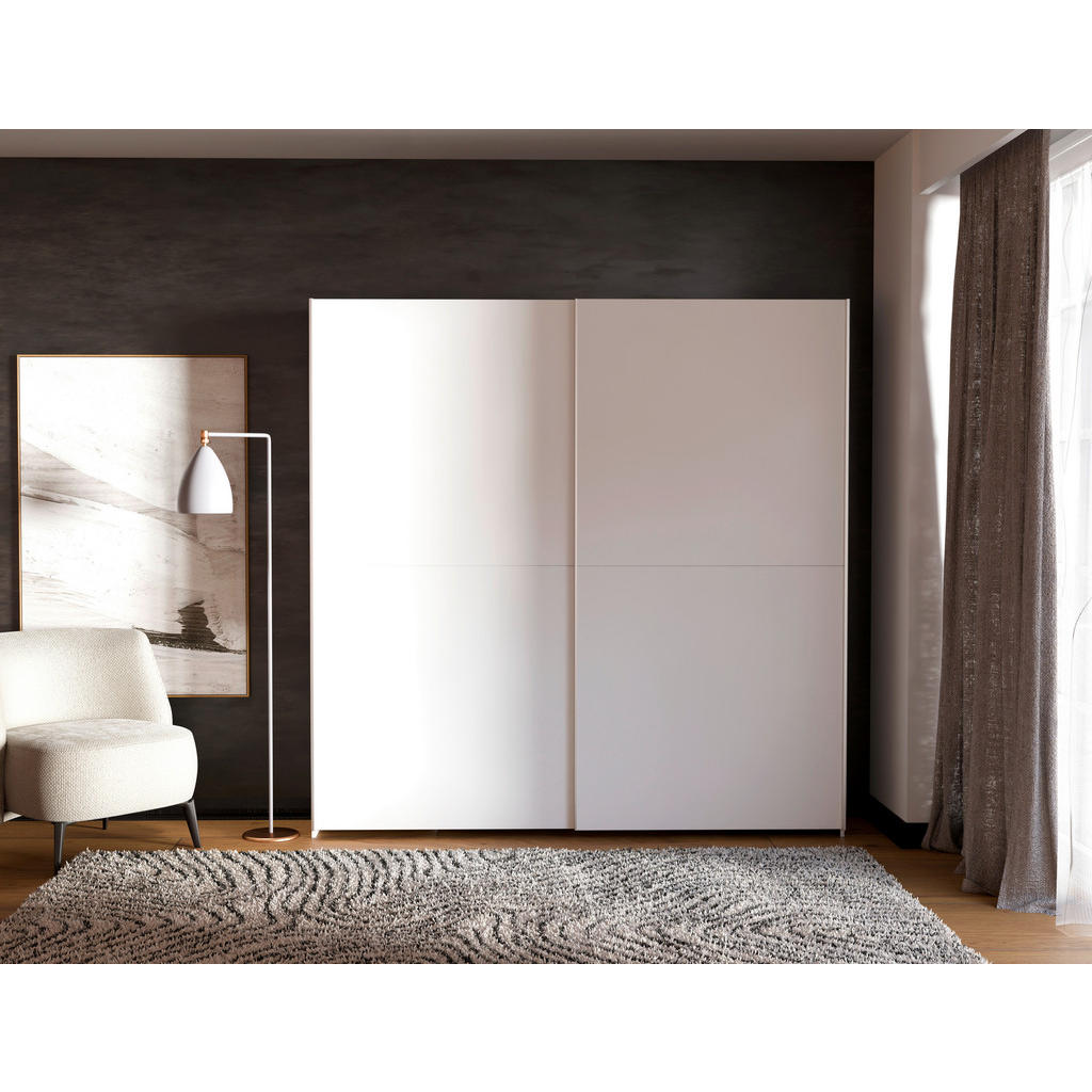 Blagovnaznamka Carryhomenudi pohištvo za vse vrste prostorov, med drugim za dnevne sobe,jedilnice, spalnice, pisarne in predsobe. Znana je po simplističnih,a slogovno dovršenih dizajnih, pestrem izboru ter odličnem razmerjumed kakovostjo in ceno. Funkcionalna, trpežna večnamenska omara z drsnimi vrati se ponaša s kar 12 policami. Povsod vam bo torej občutno olajšala shranjevanje predmetov in organizacijo prostorov: zaradi nevtralne bele barve se poda širokemu spektru sodobnih interierjev. Vtis dopolni robustna konstrukcija, ki izdelku zagotavlja dolgo življenjsko dobo. Ključne prednosti: Enostavno vzdrževanje: Za čistočo zadošča občasno brisanje s suho krpo. Visoka kapaciteta: Dvanajsterica polic omogoča shranjevanje najrazličnejših potrebščin. Brezročajno odpiranje pripomore k eleganci izdelka ter obenem prihrani prostor. Lastnosti: Dimenzije: Širina 200,1 cm, višina 210 cm, globina 39,1 cm Barva: Bela, barve aluminija Materiali: Imitacija lesa (iverna plošča, HDF), kovina Površina: Folija z dekorjem