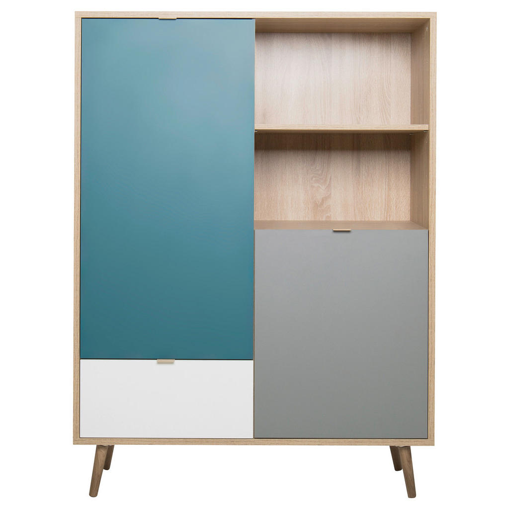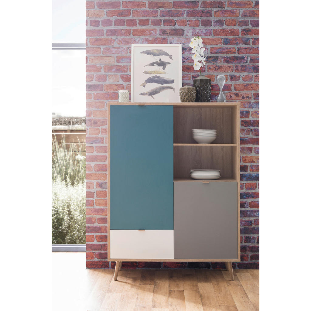VISOKA KOMODA, siva, bela, barve hrasta, barve petroleja