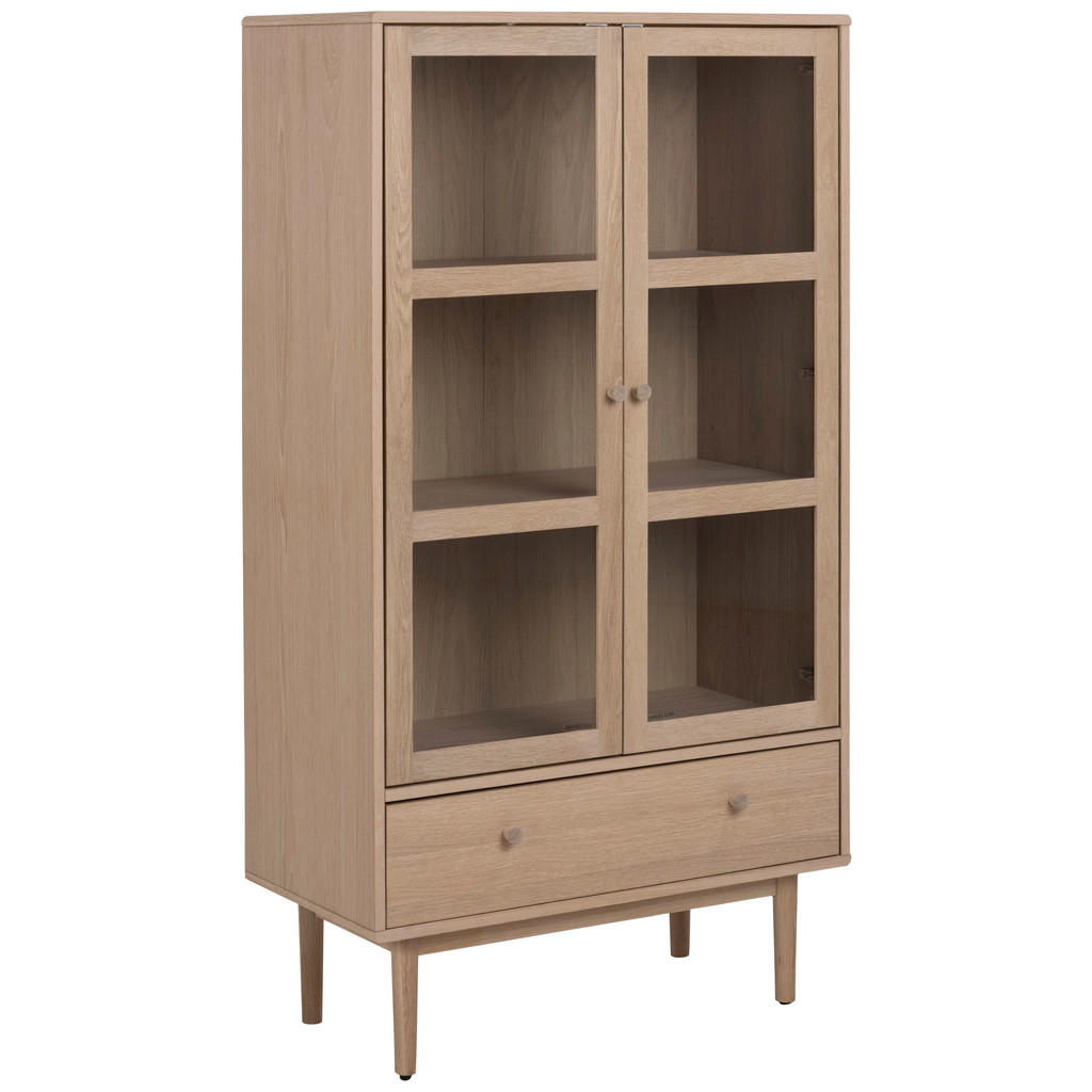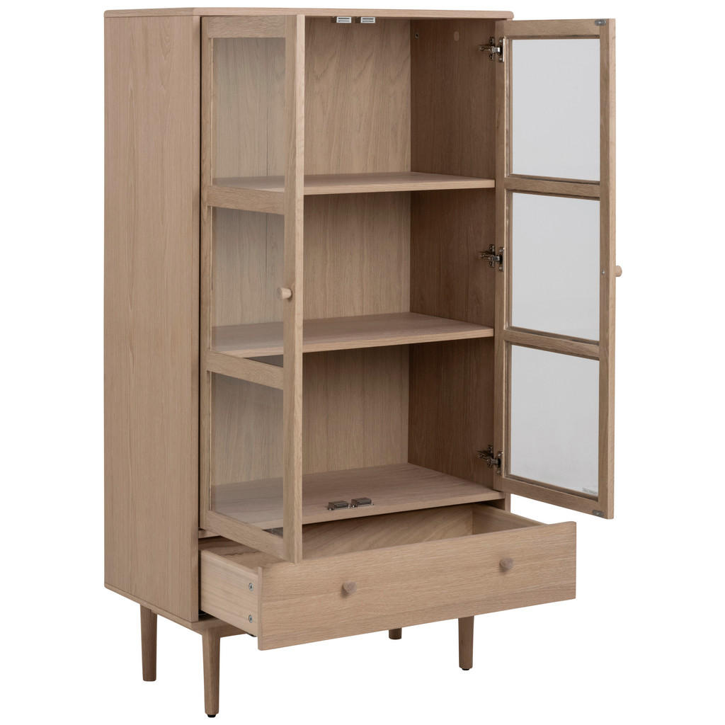 Prostor za shranjevanje in razstavljanje najljubših predmetov! Vitrina MID.YOU v barvi hrasta združuje veliko shranjevalnega prostora in odprte steklene površine, ki omogočajo razstavljanje dekorativnih predmetov, knjig ali posode. Topel hrastov odtenek se lepo poda v različne prostore, ne glede na slog opremljanja. V notranjosti se nahajajo police, ki omogočajo organiziran razpored stvari, kombinacija zaprtih in odprtih delov pa pomaga ohranjati urejen videz. Ne glede na to, ali želite shraniti jedilni servis, knjige ali dekorativne dodatke, bo MID.YOU vitrina zagotovila dovolj prostora in poskrbela za urejen videz vašega doma! Ključne prednosti izdelka: Kombinacija zaprtih in odprtih prostorov: Shranjevanje in razstavljanje v enem. Topel hrastov odtenek: Enostavno se ujema z različnimi kosi pohištva. Steklena vrata: Omogočajo preglednost in zaščito predmetov pred prahom. Lastnosti: Material: les in steklo