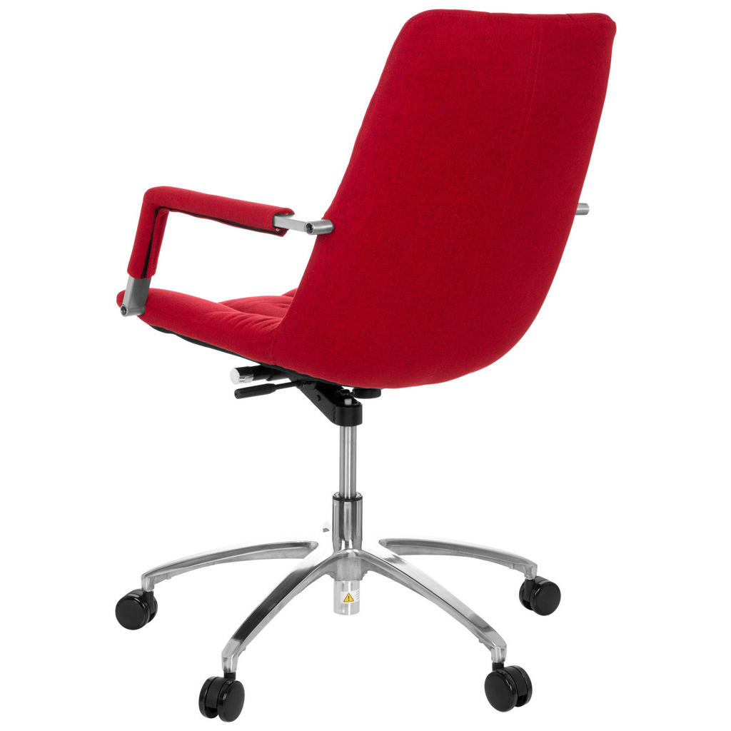 Vrtljivi stol blagovne znamke MID.YOU prinaša v prostor retro eleganco z modernimi funkcionalnostmi. Značilna srednje visoka hrbtna naslonjala in vključen dekorativni vzglavnik poskrbita za dodatno udobje, medtem ko wipp mehanika omogoča dinamično sedenje. Stol je višinsko nastavljiv (44–54 cm), hrbtno naslonjalo pa je večkrat nastavljivo, kar omogoča ergonomsko prilagoditev uporabniku. Zahvaljujoč 360° vrtljivemu sedežu, nastavljivim naslonjalom za roke in 5 univerzalnim kolesom s funkcijo zaustavitve nudi popolno fleksibilnost in stabilnost. Izdelan je iz kakovostnih materialov – poliestrska tkanina, pena in aluminij – ter je primeren za uporabnike do 110 kg in višine do 190 cm. Ključne prednosti: Retro dizajn v rdeči barvi z dekorativnim vzglavnikom Srednje visoko hrbtno naslonjalo, večkrat nastavljivo