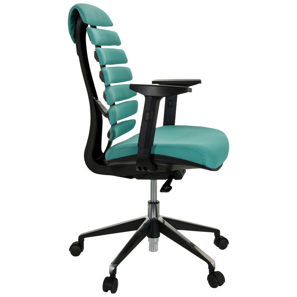 Blagovna znamka Mid.You obsega širok spekter pohištva, dodatkov za pohištvo in tekstila. Naj gre za dnevno sobo, otroško sobo, spalnico ali jedilnico, prav gotovo boste našli izdelke, ki so zelo estetsko dovršeni, a zato nič manj funkcionalni. Slogan “Sredi vašega doma.” se zaradi raznolike in kvalitetne ponudbe znamki resnično poda. Trpežen, funkcionalen vrtljivi stol iz tekstila, umetne mase in aluminija se ponaša z vrtljivim sediščem, ergonomskim naslonom za hrbet, naslonoma za roke ter nastavljivo višino. Zaradi elegantne črne in turkizne barve se poda večini sodobnih interierjev, vtis pa dopolni robustna konstrukcija, ki mu zagotavlja dolgo življenjsko dobo. Ključne prednosti: Ergonomična zasnova, o kateri pričajo vrtljivo sedišče, ergonomski naslon za hrbet ter nastavljiva višina. Enostavna montaža, ki ne zahteva posebnih spretnosti. Penasta notranjost zagotavlja neštete ure udobnega sedenja. Lastnosti: Dimenzije: Širina 65 cm, vi&scar