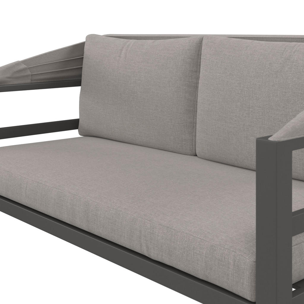 Udobje, stil in funkcionalnost – vse v enem privlačnem vrtnem kompletu. S 5-delnim Dining-Loungeset kompletom AMBIA GARDEN v sivi in antracit barvi boste na svojem vrtu ali terasi ustvarili pravi zunanji lounge kotiček z dizajnerskim pridihom. Osrednji element garniture je vrtna klop z naslonom in integrirano streho, ki nudi prijetno senco in hkrati elegantno poudari prostor. Ta garnitura ni le prostor za sprostitev, temveč tudi izjemno funkcionalen zunanji jedilni kotiček, kjer se lahko družite, obedujete ali preprosto uživate v poletnih večerih. Dodatna klop brez naslona ter dva tabureja omogočajo prilagodljivo postavitev glede na število gostov ali razpoloženje. Mehke blazine in naslonjala s snemljivimi in pralnimi prevlekami zagotavljajo udobje in enostavno vzdrževanje. Osrednjo vlogo dopolnjuje prostorna miza z barvnim kaljenim steklom in aluminijasto konstrukcijo, ki je odporna, moderna in preprosta za čiščenje. Ključne prednosti: 5-delni komplet za jedilno-sprostitveni kotiček na prostem Vrtna klop z naslonjalom in streho za prijetno senco v vročih dneh