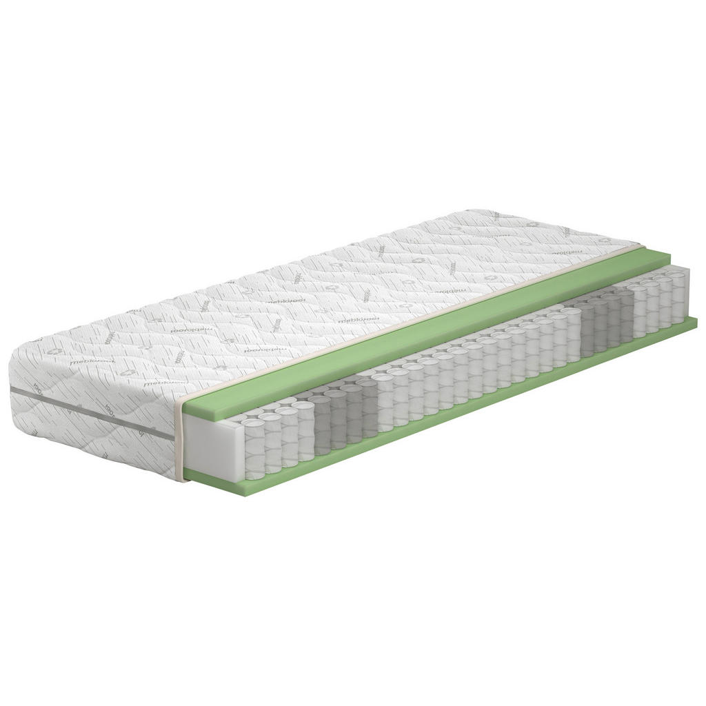 Vzmetnica Kozmik+ skrbi za zanesljivo podporo vašemu telesu s 5-conskim žepkastim jedrom, zato se boste zbujali spočiti in naspani. Zračna in hipoalergena HR-pena je prijetno mehka na otip, hkrati pa je izjemno elastična in nudi čvrsto oporo med ležanjem. Vzmetnica je primerna za astmatike in alergike. Jedro: 5-consko ergonomsko žepkasto vzmeteno jedro slovi po svoji izvrstni točkovni in čvrsti opori celotnemu telesu. Vaša hrbtenica bo vedno v naravnem položaju ne glede na vaš spalni položaj, celotno telo pa sproščeno in spočito. Plasti udobja: Prijetno zračna in nadvse elastična 3-centimetrska plast HR-pene zagotavlja prijetno spalno klimo, saj preprečuje pregrevanje telesa. Vaš spanec bo tako ostal suh in svež tekom celotne noči. Pena je hipoalergena in zato primerna za vse, ki trpijo za alergijami ali astmo. Preobleka: Pletenina preobleke je sestavljena iz delno recikliranih poliestrskih vlaken, ki odbijajo vlago in skrbijo, da je vaše ležišče vedno suho in sveže. Obogatena je z antibakterijsko zaščito na osnovi srebrovih ionov, ki preprečujejo razvoj bakterij in mikroorganizmov. Preobleka je hipoalergena, snemljiva in pralna pri 60 °C. Vzmetnica KOZMIK+ je na voljo v različnih trdotah (Normal in Hard) in dimenzijah. Dimenzija: 80×200 cm