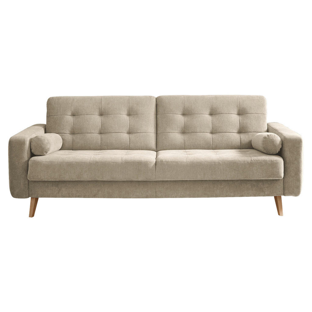 ZOFA S POSTELJNO FUNKCIJO, peščene barve tekstil, leseni material