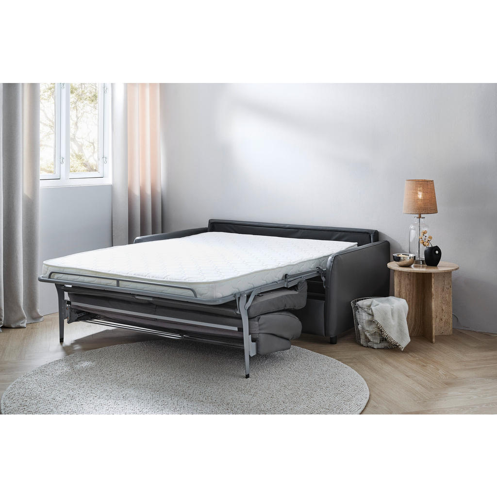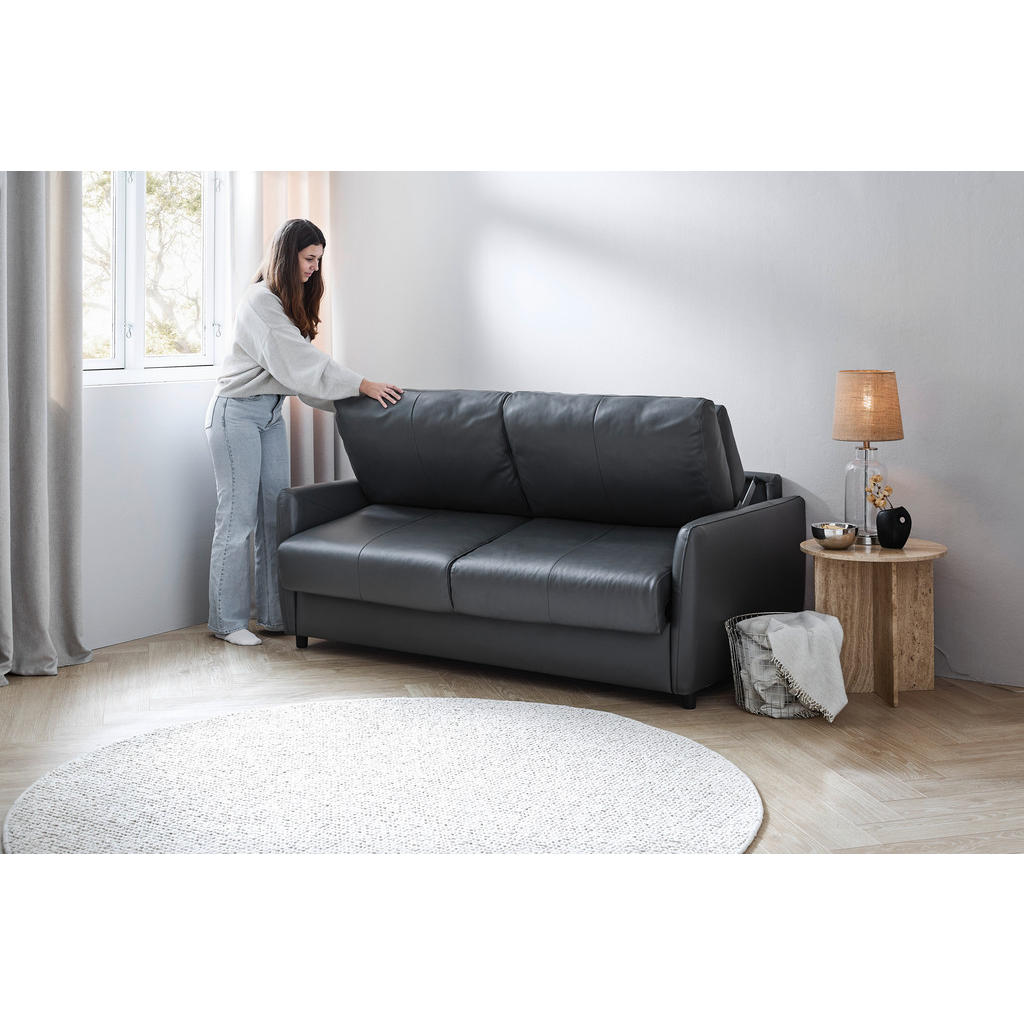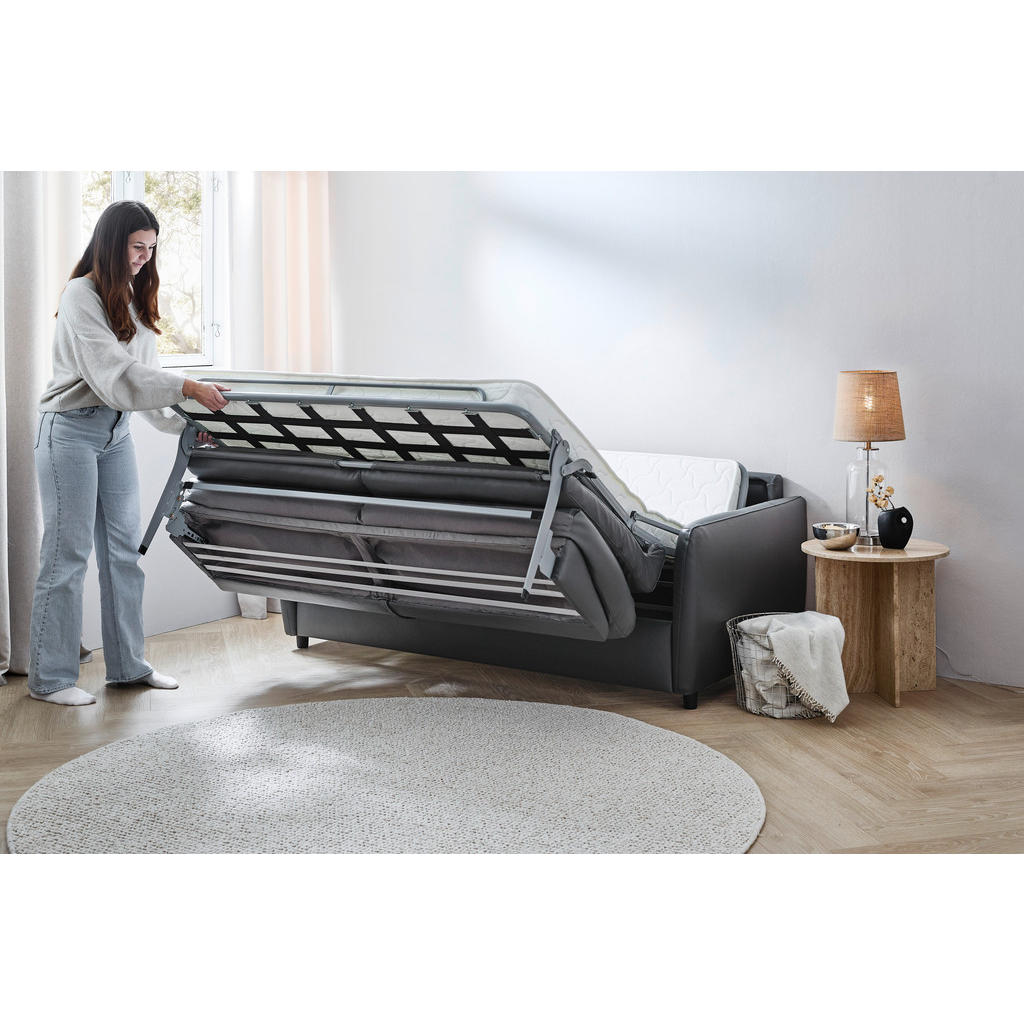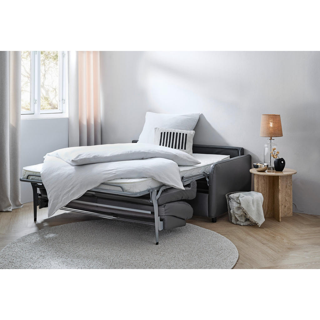 ZOFA S POSTELJNO FUNKCIJO, temno siva tekstil, usnje